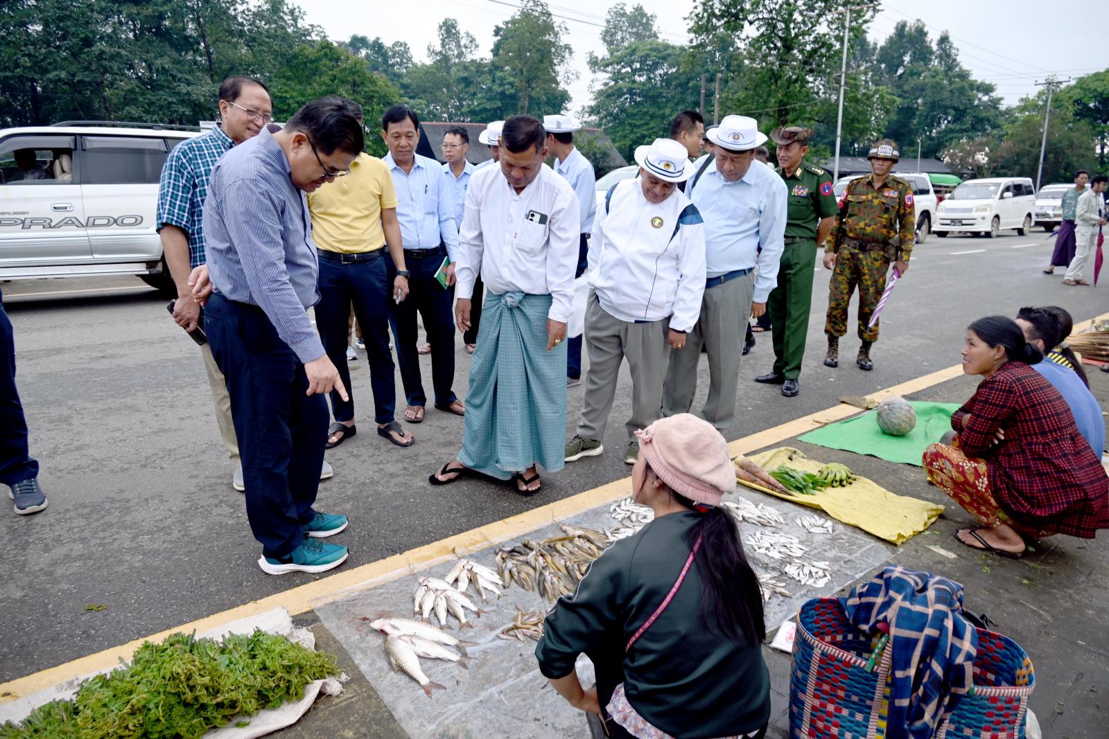 ရှေးဦးစွာ ပြည်နယ်ဝန်ကြီးချုပ်သည် ပြည်နယ်ဝန်ကြီးများ၊ ပြည်နယ်အဆင့်ဌာနဆိုင်ရာများ၊ စစ်ဗျူဟာ (အခြေချ) ပူတာအိုဗျူဟာမှူး ဗိုလ်မှူးကြီးရဲဟိန်း၊ ခရိုင်/ မြို့နယ်စီမံအုပ်ချုပ်ရေးအဖွဲ့ဝင် များ၊ တာဝန်ရှိသူများနှင့်အတူ ဇူလိုင် ၂၀ ရက် နံနက် ၆ နာရီခွဲတွင် မြို့မရပ်ကွက်ရှိ ပူတာအိုမြို့တွင် ခရီးသွားဧည့်သည်များ အဓိကဆွဲဆောင်ရာနေရာတစ်ခုဖြစ်သည့် နံနက်မိုးမလင်းဈေးသို့ သွားရောက် ပြီး နံနက်ဈေး၌ ဈေးဝယ်လာရောက်သူများ၊ ဈေးရောင်းသူများဖြင့် ဒေသထွက် အသီးအနှံများ၊ သား၊ ငါးနှင့် မွေးမြူရေးထွက်ကုန်ပစ္စည်းများ၊ အခြေခံစားသောက်ကုန်များ ရောင်းဝယ်ဖောက်ကားနေမှုကို လှည့်လည်ကြည့်ရှုအားပေးခဲ့ကြကာ အခြေခံစားသောက်ကုန် ကုန်ဈေးနှုန်းအခြေအနေများ၊ ရောင်း ဝယ်ဖောက်ကားမှု အခြေအနေများနှင့် ဒေသတွင်း ကုန်စည်ဝင်ရောက်မှု အခြေအနေများကို ဈေးရောင်း/ ဈေးဝယ်လာသူများအား ရင်းရင်းနှီးနှီး လိုက်လံနှုတ်ဆက်မေးမြန်းခဲ့ကြသည်။
