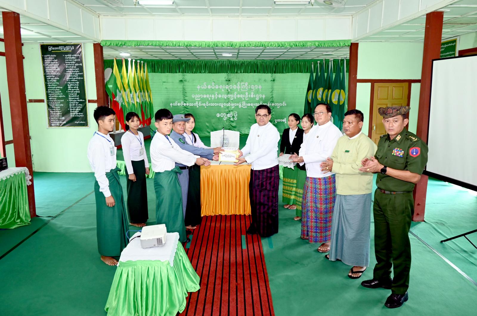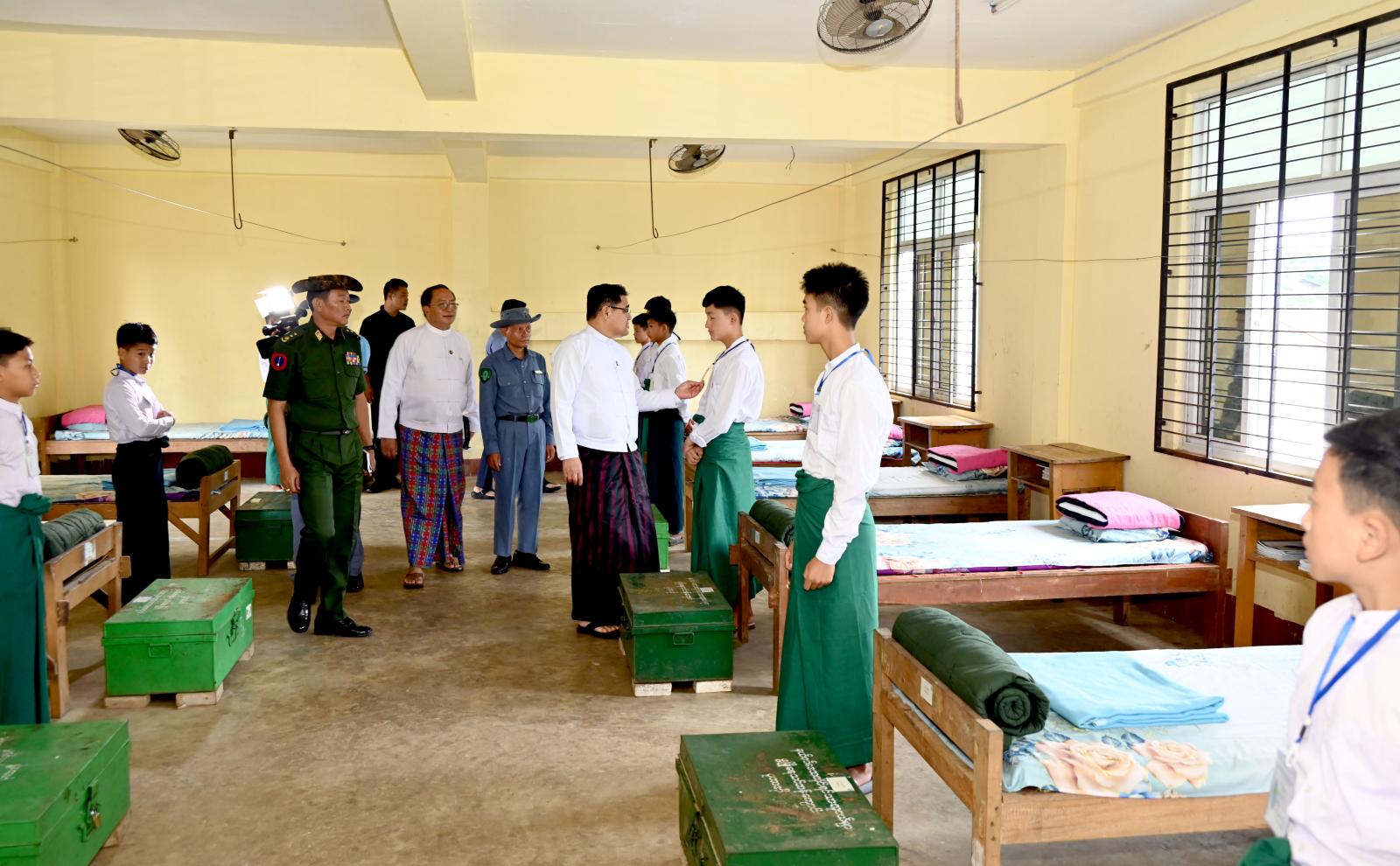 ဆက်လက်၍ ကျောင်းအုပ် ဦးသိန်းလှမောင်က သင်တန်းကျောင်းဆိုင်ရာ အချက်အလက်များ နှင့် သင်ကြားရေးလုပ်ငန်းများ၊ Grade-12 အောင်မြင်မှု အခြေအနေများ ရှင်းလင်းတင်ပြမှုအပေါ် ပြည်နယ်ဝန်ကြီးချုပ် လိုအပ်သည်များ ဖြည့်ဆည်းဆောင်ရွက်ပေးနိုင်ရေး ပေါင်းစပ်ဆောင်ရွက်ပေးခဲ့ကာ ကျောင်းရှိ ဆရာ/ ဆရာမ (၁၇)ဦး၊ ကျောင်းသား/ ကျောင်းသူ (၂၁၅)ဦးတို့အတွက် အာဟာရ စရိတ်ထောက်ပံ့ငွေကျပ် (၂၅)သိန်း၊ ကျောင်းသုံးဗလာစာအုပ်၊ စာရေးကိရိယာများကို ထောက်ပံ့ပေးအပ်ခဲ့ပြီး ကျောင်းဝင်းအတွင်းရှိ ကျား/ မ အိပ်ဆောင်များ၊ စားရိပ်သာများအား လှည့်လည်ကြည့်ရှုစစ်ဆေးခဲ့ကြသည်။