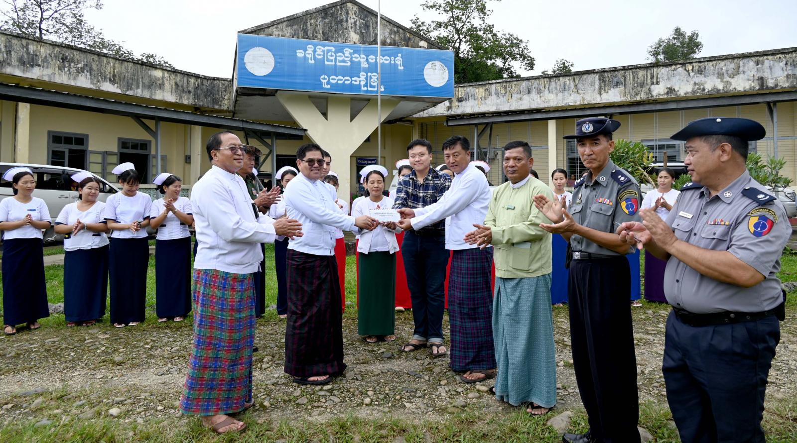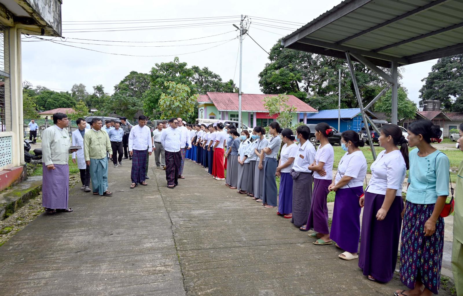 ဆက်လက်၍ ပြည်နယ်ဝန်ကြီးချုပ်၊ ပြည်နယ်ဝန်ကြီးများနှင့် တာဝန်ရှိသူများကခရိုင်အတွင်းရှိ တိုင်းရင်းသားစာပေနှင့် ယဉ်ကျေးမှုအဖွဲ့များ၊ ဘာသာရေးအသင်းအဖွဲ့များ၊ ရပ်ကွက်/ ကျေးရွာနေ ပြည်သူများအတွက် ရပ်ကွက်အုပ်ချုပ်ရေးမှူးများ၊ ခရိုင်/ မြို့နယ်အဆင့် ဌာနဆိုင်ရာများအတွက် ဆန်အိတ် (၅၀၀)၊ ဆီပိဿာ (၆၂၀)၊ ကြက်ဥအလုံးရေ (၇၈၀၀)လုံး၊ ခေါက်ဆွဲခြောက်ဖာ (၁၁၄)ဖာ၊ လက်ဖက်နှင့် အကြော်ဆုံ (၁၅၈)ထုပ်တို့ကို အသီးသီးထောက်ပံ့ပေးအပ်ခဲ့ကြကာ ပြည်နယ်ဝန်ကြီးချုပ်က နိဂုံးချုပ်အမှာစကားပြောကြားပြီး အဆိုပါ ခန်းမအတွင်း ဝန်ထမ်းများ၊ ဘာသာရေးနှင့် လူမှုရေးအသင်းအဖွဲ့များ၊ ဒေသခံပြည်သူများအား ပြည်နယ်အစိုးရအဖွဲ့က တပ်မတော်လေယာဉ် တင်ပို့ထားသည့် စက်သုံးဆီဒီဇယ်နှင့်ဓာတ်ဆီများ ဖြန့်ဝေပေးနေမှုများကို လှည့်လည်ကြည့်ရှုအားပေးခဲ့ကြပြီး ဒေသခံပြည်သူများအား ရင်းရင်းနှီးနှီးလိုက်လံနှုတ်ဆက်အားပေးခဲ့ကြသည်။
