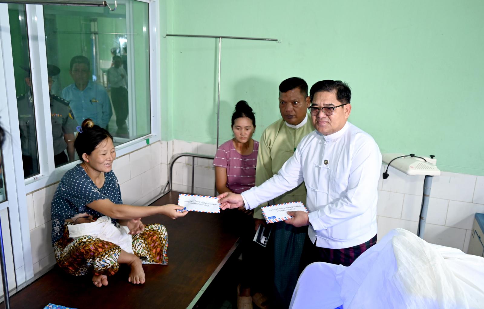 ထို့နောက် ပြည်နယ်ဝန်ကြီးချုပ်နှင့် အဖွဲ့ဝင်များသည် ပူတာအိုခရိုင် ပြည်သူ့ဆေးရုံသို့သွားရောက်ပြီး ဆေးရုံအုပ်၊ ဆရာဝန်များ၊ ကျန်းမာရေးဝန်ထမ်းများနှင့်အတူ ဆေးရုံအတွင်း ကျန်းမာရေး စောင့်ရှောက်မှုဆောင်ရွက်ပေးလျက်ရှိသည့် အခြေအနေများနှင့် ဆေးရုံတက်ရောက်၍ ဆေးဝါးကုသမှုခံယူနေသော လူနာများအား ရင်းရင်းနှီးနှီးလိုက်လံနှုတ်ဆက်အားပေးခဲ့ကြကာ လူနာ (၆၀) ကျော်အတွက် ထောက်ပံ့ငွေများနှင့် ဆေးရုံကျန်းမာရေးဝန်ထမ်းများအတွက် ထောက်ပံ့ငွေကျပ် ၁၀ သိန်းကို ထောက်ပံ့ပေးအပ်ခဲ့ကြသည်။