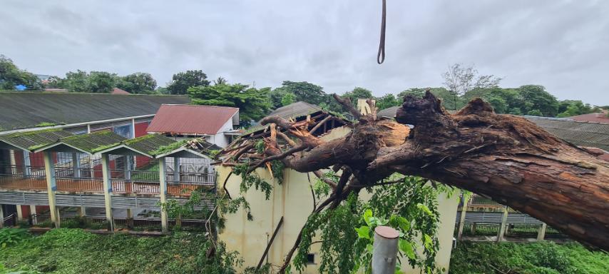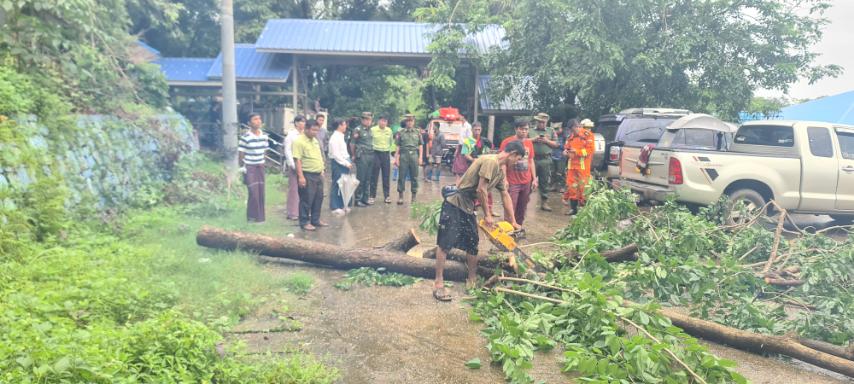 မွန်ပြည်နယ်၊ မော်လမြိုင်မြို့၊ ပန်းဘဲတန်းရပ်ကွက်၊ တောင်ပေါ်ဆောင်လမ်းရှိ မော်လမြိုင် ပြည်သူ့ဆေးရုံကြီး အနောက်ဆောင် အမျိုးသမီးခွဲစိတ်ဆောင်ပေါ်သို့ ယမန်နေ့နံနက်ပိုင်းက မိုးအဆက်မပြတ် ရွာသွန်းမှုကြောင့် ဆေးရုံကြီး အမျိုးသမီးခွဲစိတ်ဆောင် အနောက်ဘက်ရှိ ပိတောက်ပင် ပြိုလဲကျပြီး ထိခိုက်ပျက်ဆီးခဲ့သဖြင့် မြို့နယ်မီးသတ်ဦးစီးမှူး ဦးစိုးကျော်သူနှင့်အဖွဲ့၊ မြို့နယ်ရဲတပ်ဖွဲ့မှူး ရဲမှူးတင်ဦးအဖွဲ့၊ မော်လမြိုင် တပ်နယ်အဖွဲ့ ဒုတိယဗိုလ်မှူးကြီး အောင်ဇော်ဟိန်းအဖွဲ့၊ လူမှုကူညီရေးအဖွဲ့ ဘိုဘိုဝင်းနှင့်အဖွဲ့၊ ရပ်ကျေးအဖွဲ့များ ပူးပေါင်း၍ရှင်းလင်းဆောင် ရွက်ခဲ့ကြောင်းသိရသည်။