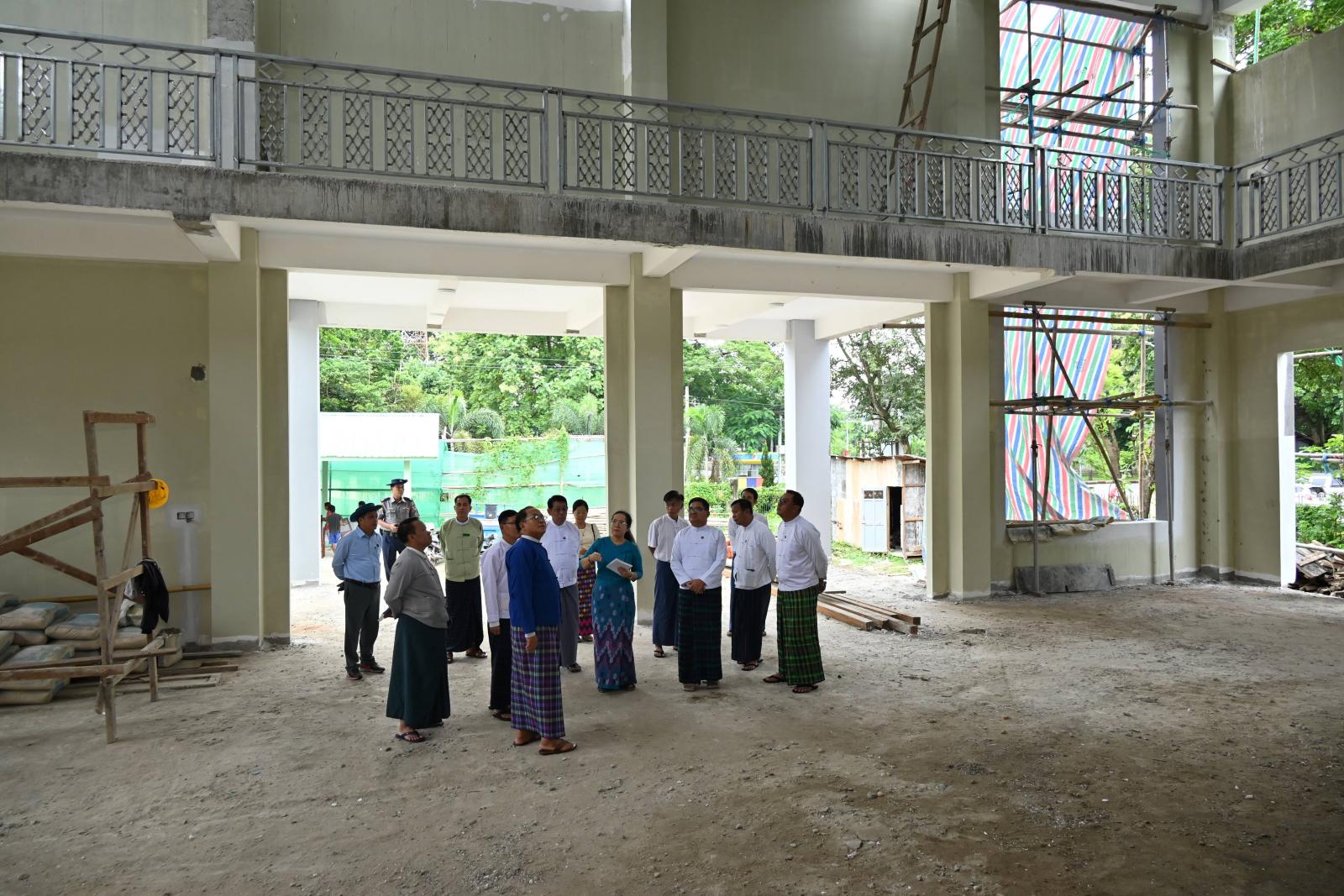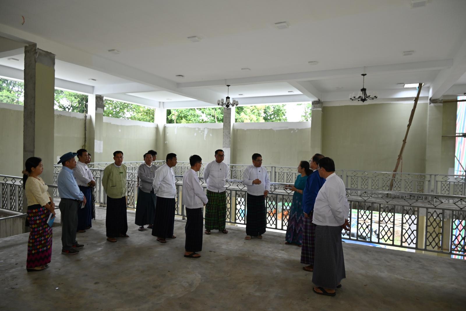 ထိုနောက် မြစ်ကြီးနားမြို့ ဧရာရပ်ကွက်အတွင်း ယခင်မြို့တော်ခန်းမဟောင်း မြေနေရာ၌ ခေတ်စနစ်နှင့်လျော်ညီပြီး ကချင်တိုင်းရင်းသားတို့၏ ရိုးရာယဉ်ကျေးမှုပုံစံကို ပိုမိုပေါ်လွင်သော အဆောက်အအုံသစ် ဖြစ်ပေါ်လာစေရေး ပြည်နယ်အစိုးရအဖွဲ့၏ ငွေလုံးငွေရင်း ခွင့်ပြုရန်ပုံငွေကျပ် ၁၁၈၈ သန်းဖြင့် စည်ပင်သာယာရေးအဖွဲ့၏ ကြီးကြပ်မှုဖြင့် တင်ဒါအောင်မြင်သည့် ကုမ္ပဏီက တာဝန်ယူတည်ဆောက်လျက်ရှိသည့် အဆောက်အအုံသစ် တည်ဆောက်နေမှုအခြေအနေများနှင့် စပ်လျဉ်း၍ လုပ်ငန်းခွင်အတွင်းရှိ ရှင်းလင်းဆောင်၌ တာဝန်ရှိသူများ၏ ရှင်းလင်းတင်ပြမှုများအပေါ် လိုအပ်သည်များ ဖြည့်စွက်ဆောင်ရွက်နိုင်ရေး ညှိနှိုင်းပေါင်းစပ်ဆောင်ရွက်ပေးခဲ့ကာ ပြည်နယ်ဝန်ကြီး ချုပ်နှင့်အဖွဲ့ဝင်များက မြို့တော်ခန်းမသစ်တည်ဆောက်ရေးလုပ်ငန်းခွင်အတွင်း လုပ်ငန်းဆောင်ရွက် ထားရှိမှုအခြေအနေများကို လှည့်လည်ကြည့်ရှုစစ်ဆေးခဲ့ကြသည်။