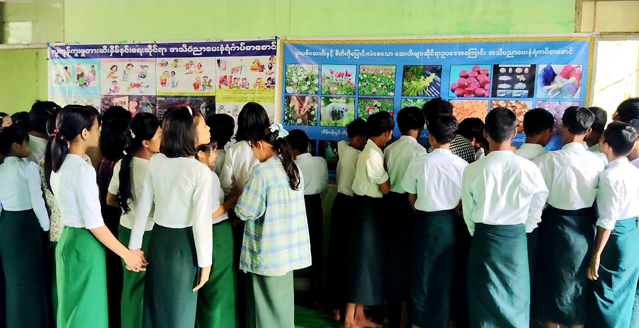 ယင်းနောက် မြို့နယ်ပြန်ကြားရေးနှင့်ပြည်သူ့ဆက်ဆံရေးဦးစီးဌာနမှ ခင်းကျင်းပြသထားသော အသိပညာပေးနံရံကပ်စာစောင်၊ စာအုပ်ပြပွဲများကို ကျောင်းသား၊ကျောင်းသူများက စိတ်ပါဝင်စားစွာ ဖတ်ရှုလေ့လာခဲ့ကြကြောင်း သိရသည်။