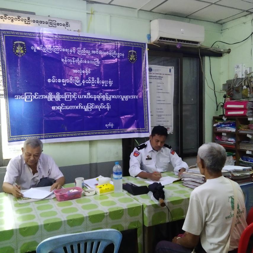 ရန်ကုန်တိုင်းဒေသကြီး၊ အလုံခရိုင်၊ စမ်းချောင်းမြို့နယ်အတွင်းရှိ ရပ်ကွက်များမှ အကြောင်းအမျိုးမျိုးကြောင့် ယာယီနေရပ်စွန့်ခွာလာသူများ စာရင်းကောက်ယူရေးလုပ်ငန်းကို ယမန်နေ့နံနက်(၁၀)နာရီက ဆောင်ရွက်ခဲ့ကြောင်းသိရသည်။