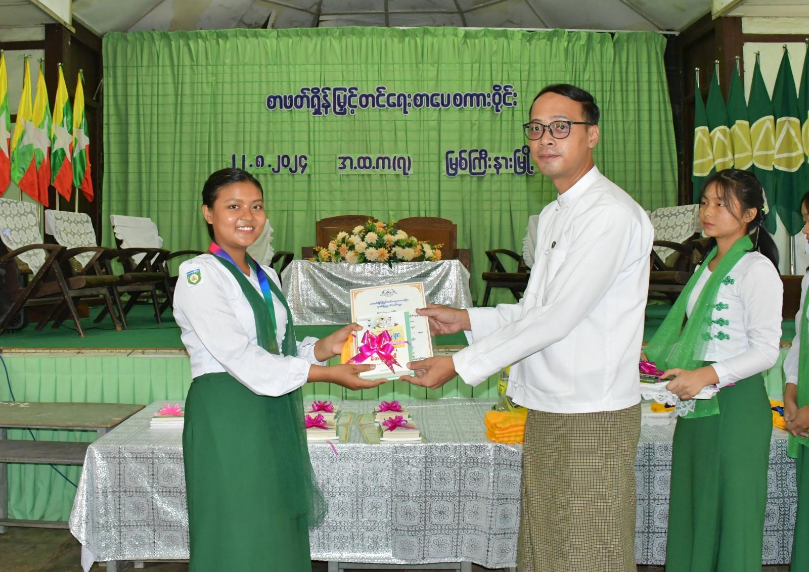ဆက်လက်ပြီး ပြည်နယ်ပြန်ကြားရေးနှင့်ပြည်သူ့ဆက်ဆံရေးဦးစီးဌာနမှ ညွှန်ကြားရေးမှူး၊ ပြည်နယ်အားကစားနှင့်ကာယပညာဦးစီးဌာနမှ ညွှန်ကြားရေးမှူး ဦးအောင်သူနှင့် တာဝန်ရှိသူများက ဆွေးနွေးပွဲတွင် ပါဝင်ဆွေးနွေးခဲ့သူများအား ဂုဏ်ပြုမှတ်တမ်းလွှာဆုတံဆိပ်နှင့် အမှတ်တရစာအုပ်ဆုလက်ဆောင်များပေးအပ်ချီးမြှင့်ပြီး အဆိုပါကျောင်းအတွက် အားကစားပစ္စည်းများ လှူဒါန်းပေးအပ်ခဲ့ပြီး ကျောင်းအုပ်ဆရာမကြီး ဒေါ်အဝေမြိုင်က ကျေးဇူးတင်စကားပြောကြားခဲ့ကြောင်း သိရသည်။