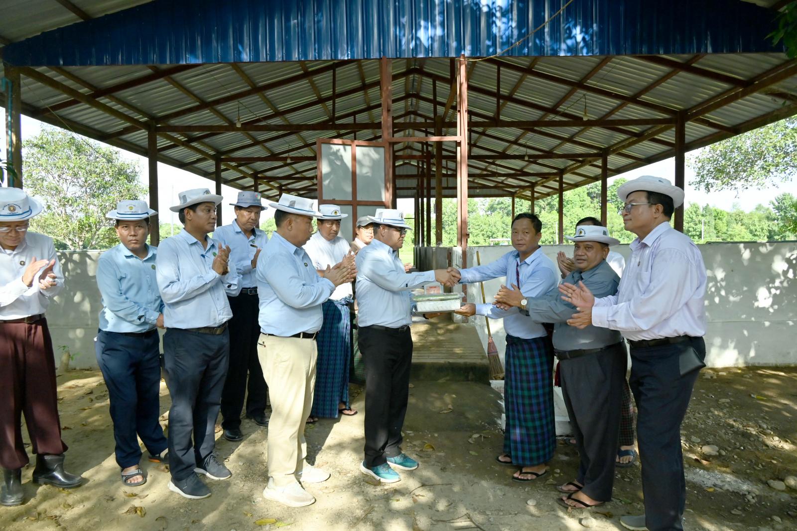 ဆက်လက်၍ ရှင်းလင်းဆောင်၌ တာဝန်ရှိသူများ၏ တံတားတည်ဆောက်ရေး စီမံကိန်းလုပ်ငန်းများနှင့် စပ်လျဉ်း၍ ရှင်းလင်းတင်ပြမှုများအပေါ် ပြည်နယ်ဝန်ကြီးချုပ်က ဘဏ္ဍာနှစ် (၃)နှစ် စီမံကိန်းဖြင့် ဆောင်ရွက်ရသည့် လုပ်ငန်းဖြစ်သည့်အတွက် သတ်မှတ်ဘဏ္ဍာနှစ်အတွင်း စံချိန်စံညွှန်းနှင့်အညီ ပြီးစီးအောင်ဆောင်ရွက်ရေးနှင့် လိုအပ်သည်များကို တာဝန်ရှိသူများနှင့် ပေါင်းစပ်ညှိနှိုင်းဆောင်ရွက်ပေးခဲ့ပြီး ပြည်နယ်ဝန်ကြီးချုပ်နှင့်တာဝန်ရှိသူများက မွေးမြူရေးတောင်သူများအားဖြန့်ဝေ ပေးနိုင်ရေးအတွက် နေအိမ်အတွင်း ငါးခူသားပေါက်ကောင်ရေ (၁၀၀၀) စမ်းသပ်မွေးမြူထားရှိမှုကို ကြည့်ရှုစစ်ဆေးခဲ့ကြကြောင်း သိရသည်။
