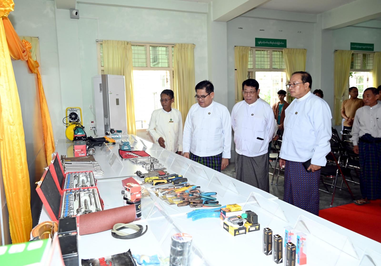 ထို့နောက် ပြည်နယ်ဝန်ကြီးချုပ်သည် ပြည်နယ်စီးပွားရေးရာဝန်ကြီး ဦးမျိုးဆွေ၊ ပြည်နယ်သယံဇာတရေးရာဝန်ကြီး ဦးတိန့်ဆောင်၊ ပြည်နယ်အဆင့် ဌာနဆိုင်ရာ တာဝန်ရှိသူများနှင့်အတူ ပြည်နယ်အသေးစားစက်မှုလက်မှုလုပ်ငန်းဦးစီးဌာနရုံး၊ လေ့ကျင့်ပျိုးထောင်ရေးစင်တာ၌ ဒေသခံတိုင်းရင်းသားလူငယ်များအတွက် ဖွင့်လှစ်ပေးသည့် အသေးစားကုန်ထုတ်လုပ်ငန်းများ ဖန်တီးပေးရေးနှင့် မိသားစုဝင်ငွေတိုးရေးစီမံကိန်းသင်တန်းတစ်ခုဖြစ်သည့် အခြေခံမော်တော်ဆိုင်ကယ် ပြုပြင်ထိန်းသိမ်းနည်းပညာသင်တန်းဖွင့်ပွဲသို့ တက်ရောက်ခဲ့ကြသည်။