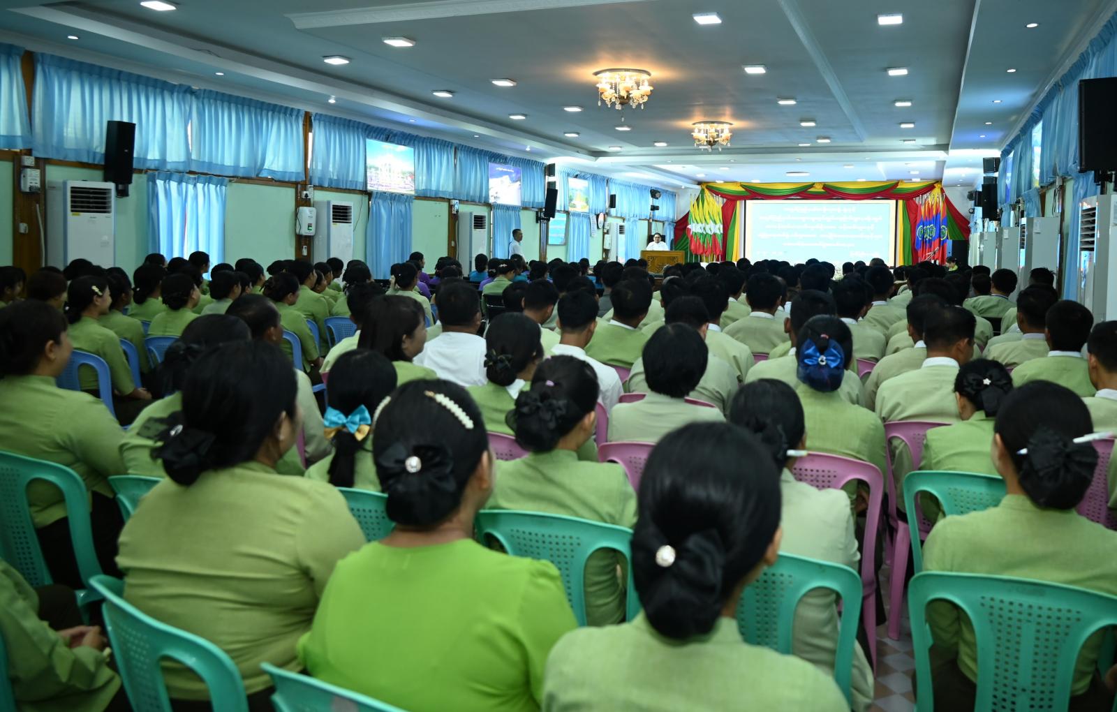 ရှေးဦးစွာ အခမ်းအနားတွင် ပြည်နယ်ဝန်ကြီးချုပ်ဦးခက်ထိန်နန်က ယခုအချိန်ကာလသည် ဒေသအခြေအနေအရ မော်တော်ယာဉ်လမ်းများပိတ်ပြီး ကုန်ဈေးနှုန်းမြင့်မားနေချိန်ဖြစ်သည့်အတွက် ဝန်ထမ်းများ တစ်ဖက်တစ်လမ်းက အထောက်ကူဖြစ်စေရေး၊ ဝန်ထမ်းများအနေဖြင့် နေ့မအား၊ ညမနား အားကျိုးမာန်တက် တာဝန်သိသိ၊ သစ္စာရှိရှိဖြင့် အလုပ်ကြိုးစားဆောင်ရွက်မှုကိုလည်း အသိအမှတ်ပြုသည့်အနေဖြင့် အခြေခံစားသောက်ကုန်အပါအဝင် အခြားလိုအပ်ချက်များကိုလည်း အခါအားလျော်စွာ ထောက်ပံ့ပေးနိုင်ရေး စီမံဆောင်ရွက်ပေးလျက်ရှိသကဲ့သို့ နောင်များတွင်လည်း အလျဉ်းသင့်သလို ထောက်ပံ့ပေးနိုင်ရေး စီစဉ်ဆောင်ရွက်ပေးသွားမည်ဖြစ်ပါကြောင်း၊ သို့ဖြစ်ပါ၍ ဝန်ထမ်းများအနေဖြင့် လုပ်ငန်းခွင်အတွင်း အချင်းချင်း ချစ်ခင်စည်းလုံးစွာ၊ ပျော်ရွှင်စွာဖြင့် ယခုထက်ပိုပြီး မိမိတို့၏ လုပ်ငန်းတာဝန်များကို ကြိုးစားထမ်းဆောင်ကြရန် လိုအပ်ပါကြောင်း တိုက်တွန်းအားပေးပြောကြားသည်။