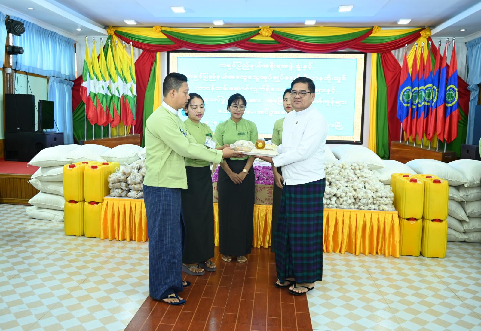 ကချင်ပြည်နယ်အစိုးရအဖွဲ့အနေဖြင့် ဝန်ထမ်းများ နေထိုင်စားသောက်မှုအဆင်ပြေစေရေး ထောက်ပံ့ပေးအပ်မှုများကို အခါအားလျော်စွာ ဆောင်ရွက်ပေးလျက်ရှိရာ ယခုနှစ် ၂၀၂၄ ခုနှစ်အတွင်း (၄)ကြိမ်မြောက်အဖြစ် စက်တင်ဘာ ၃ ရက် နံနက် ၈ နာရီခွဲက ပြည်နယ်အစိုးရအဖွဲ့ရုံးဝင်းအတွင်းရှိ ဆမားဒူဝါဆင်ဝါးနော်ခန်းမ၌ ပြည်နယ်အစိုးရအဖွဲ့ရုံးနှင့် ပြည်နယ်အထွေထွေအုပ်ချုပ်ရေးဦးစီးဌာနရုံးတို့တွင် တာဝန်ထမ်းဆောင်နေသော ဝန်ထမ်းများနှင့် လုံခြုံရေးတပ်ဖွဲ့ဝင်(၄၄၀)ကျော်တို့အတွက် ဆန်၊ ဆီနှင့် အခြေခံစားသောက်ကုန်များ ထောက်ပံ့ပေးအပ်ပွဲ အခမ်းအနားကို ကျင်းပပြုလုပ်သည်။