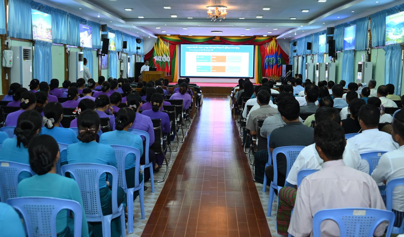 ထို့နောက် အဆိုပါခန်းမ၌ ပြည်နယ်အမျိုးသမီးရေးရာအဖွဲ့နှင့် မိခင်နှင့်ကလေးစောင့်ရှောက်မှု ကြီးကြပ်ရေးအဖွဲ့နှင့် ကျန်းမာရေးဦးစီးဌာနတို့ပူးပေါင်း၍ Mpox (မျောက်ကျောက်) ရောဂါကာကွယ် ရေး ပြည်နယ်အဆင့် အသိပညာပေးဟောပြောပွဲကို တစ်ဆက်တစ်စပ်တည်း ကျင်းပပြုလုပ်ခဲ့ပြီး ပြည်နယ်အမျိုးသမီးရေးရာအဖွဲ့ နာယက၊ ပြည်နယ်ဝန်ကြီးချုပ်၏ ဇနီး ဒေါ်နန်ဆိုင်းက အဖွဲ့ဝင်များ အား mpox ရောဂါအပါအဝင် ကျန်းမာရေးဆိုင်ရာ အသိပညာပေးလုပ်ငန်း၊ ကာကွယ်ထိန်းချုပ်ရေး လုပ်ငန်းများတွင် ပူးပေါင်းပါဝင်ဆောင်ရွက်ကြရေးနှင့် ကျန်းမာရေးဆိုင်ရာအသိပညာများကို မိသားစုမှတစ်ဆင့်ပတ်ဝန်းကျင်တွင် ဟောပြောစည်းရုံးဆောင်ရွက်ရေး ပြောကြားပြီး ပြည်နယ်ပြည်သူ့ ကျန်းမာရေးနှင့် ကုသရေးဦးစီးဌာနမှူး ဒေါက်တာတင့်နိုင်က မျောက်ကျောက်ရောဂါအကြောင်းနှင့် ဝမ်းပျက်ဝမ်းလျှောရောဂါအကြောင်းတို့အား အသိပညာပေး ဆွေးနွေးဟောပြောပေးခဲ့ကြောင်း သိရသည်။