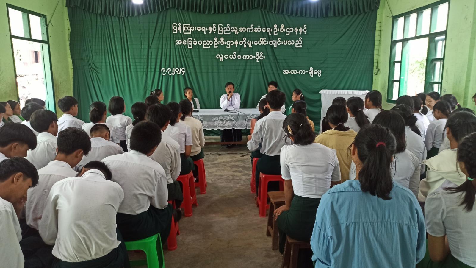 ယင်းနောက် Grade-10 မှ မောင်တိန့်ဇုန်းက လူငယ်နှင့် ပေါင်းသင်းဆက်ဆံရေးခေါင်းစဉ်ဖြင့် လည်းကောင်း၊ Grade-10 မှ မခေါင်နောက လူငယ်နှင့် ကျန်းမာရေးခေါင်းစဉ်ဖြင့်လည်းကောင်း၊ Grade-11မှ မချမ်လွေ့ခေါင်နန်းက လူငယ်နှင့် စာဖတ်ခြင်းခေါင်းစဉ်ဖြင့်လည်ကောင်း၊ Grade-11 မှ မဆောင်မျှော်က လူငယ်နှင့်ရည်မှန်းချက်ခေါင်းစဉ်ဖြင့်လည်းကောင်း အသီးသီးဆွေးနွေးခဲ့ကြပြီး တက်ရောက်လာကြသည့် ကျောင်းသား၊ ကျောင်းသူများက ဆွေးနွေးမှုများနှင့်ပတ်သတ်၍ သိရှိလိုသည့် အကြောင်းအရာများအား ပြန်လည်ဆွေးနွေးခဲ့ကြသည်။