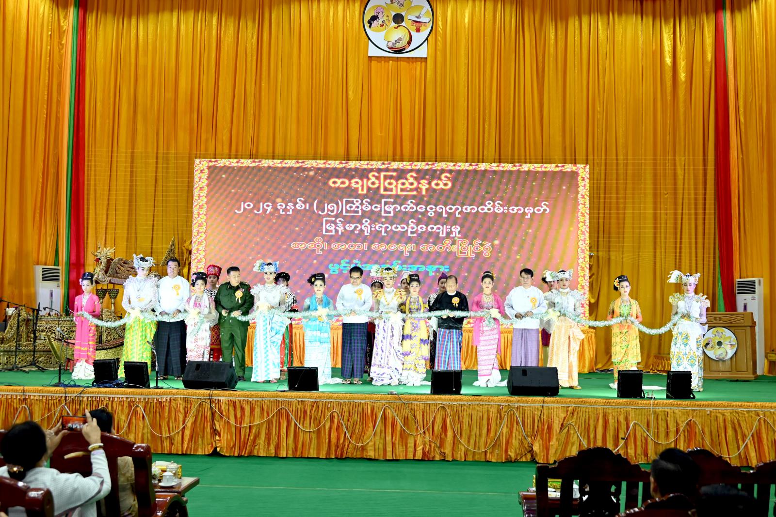 ဆက်လက်၍ ပြိုင်ပွဲကျင်းပရေးဦးစီးကော်မတီဥက္ကဋ္ဌ၊ ပြည်နယ်တိုင်းရင်းသားရေးရာဝန်ကြီးက ပြည်နယ်အဆင့်ပြိုင်ပွဲ အဆင့်အတန်းမီစွာ အောင်မြင်ချောမွေ့စွာ ကျင်းပပြုလုပ်နိုင်ရေး ကြိုတင် ပြင်ဆင်ဆောင်ရွက်ခဲ့မှု အခြေအနေများနှင့် ဗဟိုအဆင့်ပြိုင်ပွဲအတွက် အရည်အချင်းပြည့်မီသူများအား စိစစ်ရွေးချယ် ဆောင်ရွက်သွားမည့် အစီအစဉ်များကို ရှင်းလင်းတင်ပြပြီး ပြည်နယ်ဝန်ကြီးချုပ်နှင့် ဇနီးဒေါ်နန်ဆိုင်း၊ ပြည်နယ်တရားလွှတ်တော်တရားသူကြီးချုပ်နှင့် ဇနီး၊ ပြည်နယ်အစိုးရအဖွဲ့ဝင် ဝန်ကြီးများနှင့် ၎င်းတို့၏ ဇနီးများ၊ ပြည်နယ်အဆင့်ဌာနဆိုင်ရာများ၊ ဒိုင်အဖွဲ့ဝင်များ၊ ပြိုင်ပွဲဝင်များ၏ နည်းပြအုပ်ချုပ်သူများ၊ ကျောင်းသား/ကျောင်းသူများနှင့်အတူ ပြိုင်ပွဲဝင်များ၏ ယှဉ်ပြိုင်မှုကို ကြည့်ရှုအားပေးခဲ့ကြသည်။
