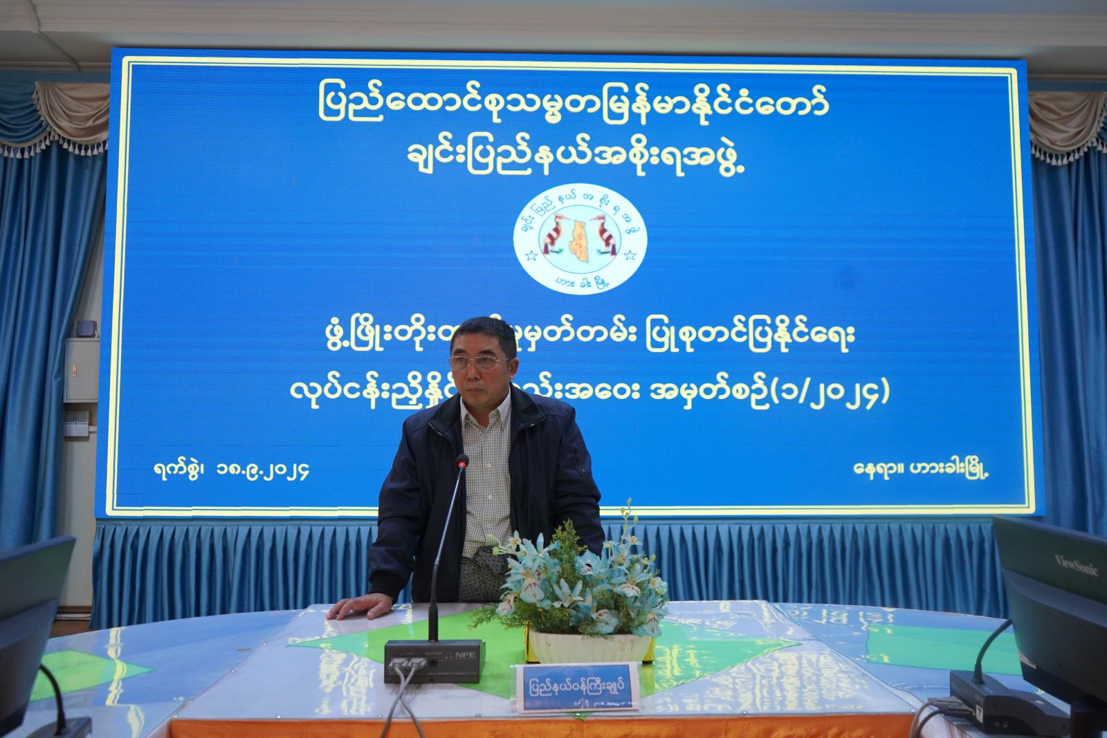ထို့နောက် ချင်းပြည်နယ်ဖွံ့ဖြိုးတိုးတက်မှုမှတ်တမ်းပြုစုရေးကော်မတီအတွင်းရေးမှူး၊ ဟားခါးတက္ကသိုလ် ဒုတိယပါမောက္ခချုပ် ဒေါက်တာနွယ်သင်းနီက ချင်းပြည်နယ်ဖွံ့ဖြိုးတိုးတက်မှုမှတ်တမ်း ပြုစုရေး လုပ်ငန်းဆောင်ရွက်ထားရှိမှုအခြေအနေကို Power Point ဖြင့် ရှင်းလင်းတင်ပြပြီး အစည်း အဝေးတက်ရောက်လာကြသည့် ပြည်နယ်အဆင့်ဌာနဆိုင်ရာတာဝန်ရှိသူများက ဆွေးနွေးတင်ပြကြသည်။