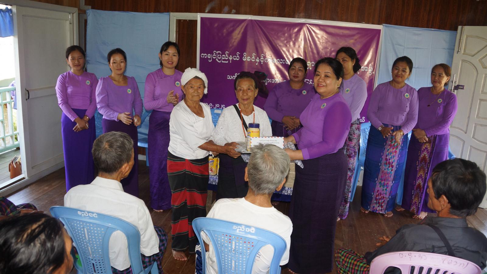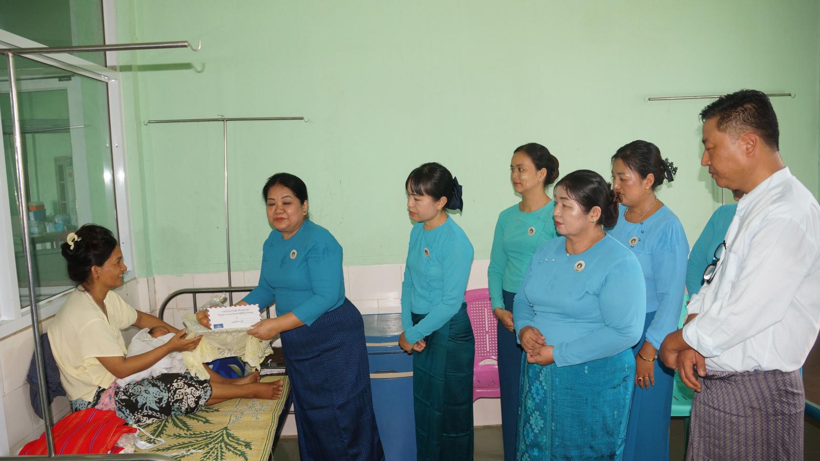 ဆက်လက်၍ နာယကနှင့်အဖွဲ့ဝင်များက ကိုယ်ဝန်ဆောင်မိခင်များထံ ထောက်ပံ့ငွေနှင့်အာဟာရဖြည့်အစားအစာများထောက်ပံ့ပေးအပ်ပြီး ခရိုင်ပြည်သူ့ဆေးရုံ ကျန်းမာရေးဆရာမများက ကိုယ်ဝန်ဆောင်မိခင်များအား ကျန်းမာရေးစစ်ဆေးပေးနေမှုများကို ကြည့်ရှုအားပေးသည်။