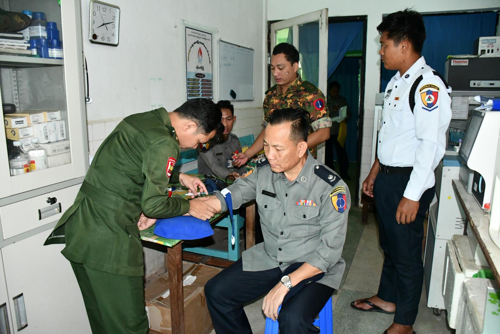 (၆၀)ပြည့်နှစ်မြောက် မြန်မာနိုင်ငံရဲတပ်ဖွဲ့နေ့ကို ကြိုဆိုဂုဏ်ပြုသောအားဖြင့် ကချင်ပြည်နယ်၊ ဗန်းမော်ခရိုင်ရဲတပ်ဖွဲ့မှူး ဒုတိယရဲမှူးကြီးရဲဝင်း ဦးစီး၍ ခရိုင်ရဲတပ်ဖွဲ့မှူးရုံး၊ မြို့နယ်ရဲတပ်ဖွဲ့မှူးရုံး၊ သီးခြားတပ်ဖွဲ့များမှ တပ်ဖွဲ့ဝင် စုစုပေါင်း(၂၀)ဦးတို့သည် ယနေ့နံနက် ၈ နာရီတွင် ဗန်းမော်မြို့၊ အမှတ်(၁၁) စစ်မြေပြင်ဆေးတပ်ရင်းတွင် စုပေါင်းသွေးလှူဒါန်းခြင်း ဆောင်ရွက်ခဲ့ပါသည်။