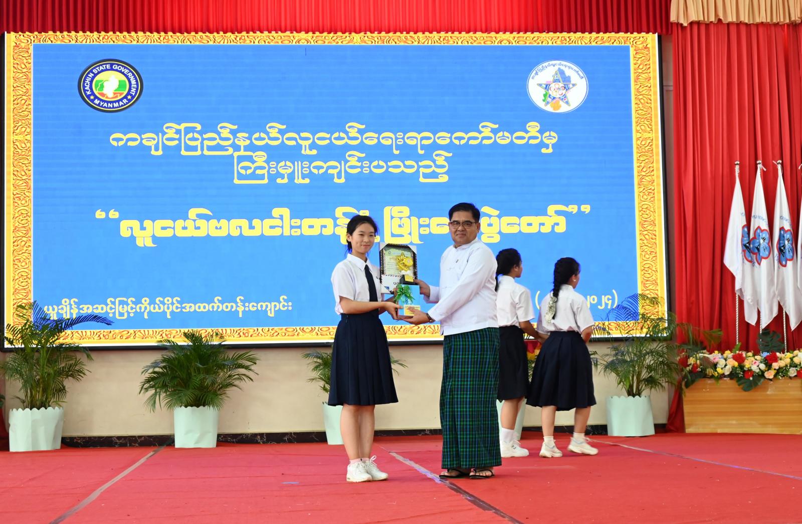 ယင်းနောက် ယူချိန်အဆင့်မြင့် ကိုယ်ပိုင်အထက်တန်းကျောင်းကော်မတီဥက္ကဋ္ဌက ဗလငါးတန်ဖွံ့ဖြိုးရေးပွဲတော် ကျင်းပပြုလုပ်ရခြင်း၏ ရည်ရွယ်ချက်များကို ရှင်းလင်းတင်ပြပြီး ကျောင်းသား၊ ကျောင်းသူလေးများက တိုင်းရင်းသားရိုးရာအက၊ တရုတ်ယဉ်ကျေးမှုအလှများဖြင့် ဖျော်ဖြေတင်ဆက်ခဲ့မှုကို ကြည့်ရှုအားပေးခဲ့ကြပြီး ပြည်နယ်ဝန်ကြီးချုပ်၊ ပြည်နယ်တရားလွှတ်တော်တရားသူကြီးချုပ်၊ ပြည်နယ်ဝန်ကြီးများ၊ ပြည်နယ်ဥပဒေချုပ်နှင့်တာဝန်ရှိသူများက ပွဲတော်အထိမ်းအမှတ် အထက်တန်း၊ အလယ်တန်းနှင့် မူလတန်းအဆင့် စာစီစာကုံး၊ ပန်းချီ၊ ပုံပြင်ပြော၊ ကဗျာရွတ်ပြိုင်ပွဲ များတွင် ပထမ၊ ဒုတိယနှင့် တတိယဆုရရှိသူများအား ဂုဏ်ပြုချီးမြှင့်ငွေများကို အသီးသီးပေးအပ် ချီးမြှင့်ခဲ့ကြသည်။