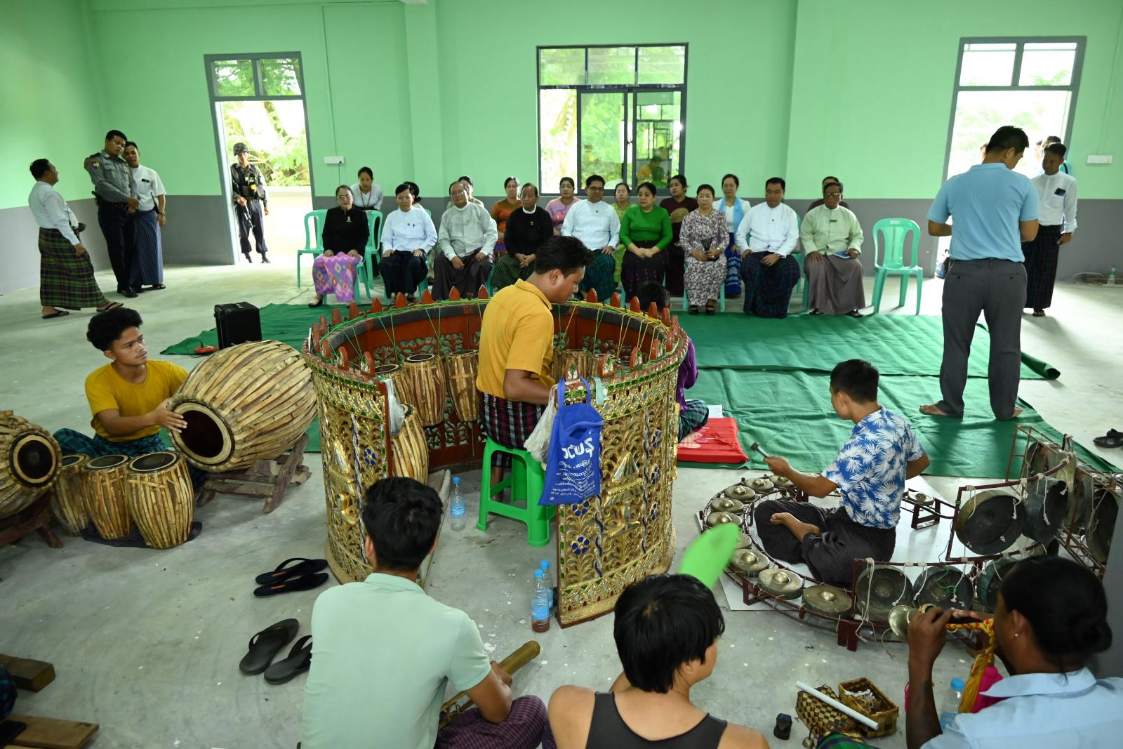 ထို့နောက် ငြိမ်းချမ်းသာယာအားကစားရပ်ဝန်းအတွင်းရှိ ဘက်စုံသုံးအားကစားခန်းမ (၃)ထပ်ဆောင် အပေါ်ဆုံးထပ်တွင် (၁၅)ကြိမ်မြောက် ငွေရတုအထိမ်းအမှတ် မြန်မာ့ရိုးရာယဉ်ကျေးမှု အဆို၊ အက၊ အရေး၊ အတီးပြိုင်ပွဲ ဗဟိုအဆင့် ပြိုင်ပွဲဝင်ရောက်ယှဉ်ပြိုင်နိုင်ရေးအတွက် ပြည်နယ်အဆင့်ပြိုင်ပွဲမှ စိစစ်ရွေးချယ်ထားသည့် ဘာသာရပ်အလိုက် ပြိုင်ပွဲဝင်များအား စခန်းသွင်းလေ့ကျင့်ပြင်ဆင်နေမှုအခြေအနေများ၊ ပြိုင်ပွဲဝင်များအား ချက်ပြုတ်ကျွေးမွေးမှု အခြေအနေများကို လှည့်လည်ကြည့်ရှု အားပေးခဲ့ကြပြီး ပြည်နယ်ဝန်ကြီးချုပ်က ထောက်ပံ့ငွေကျပ် (၁၀)သိန်းနှင့် တိုင်းရင်းသား ရေးရာဝန်ကြီးက အားဖြည့်အချိုရည်များကို ထောက်ပံ့ပေးအပ်ခဲ့ကြသည်။
