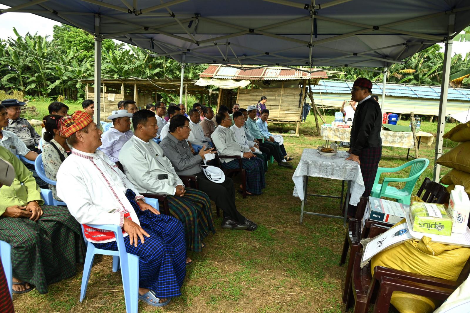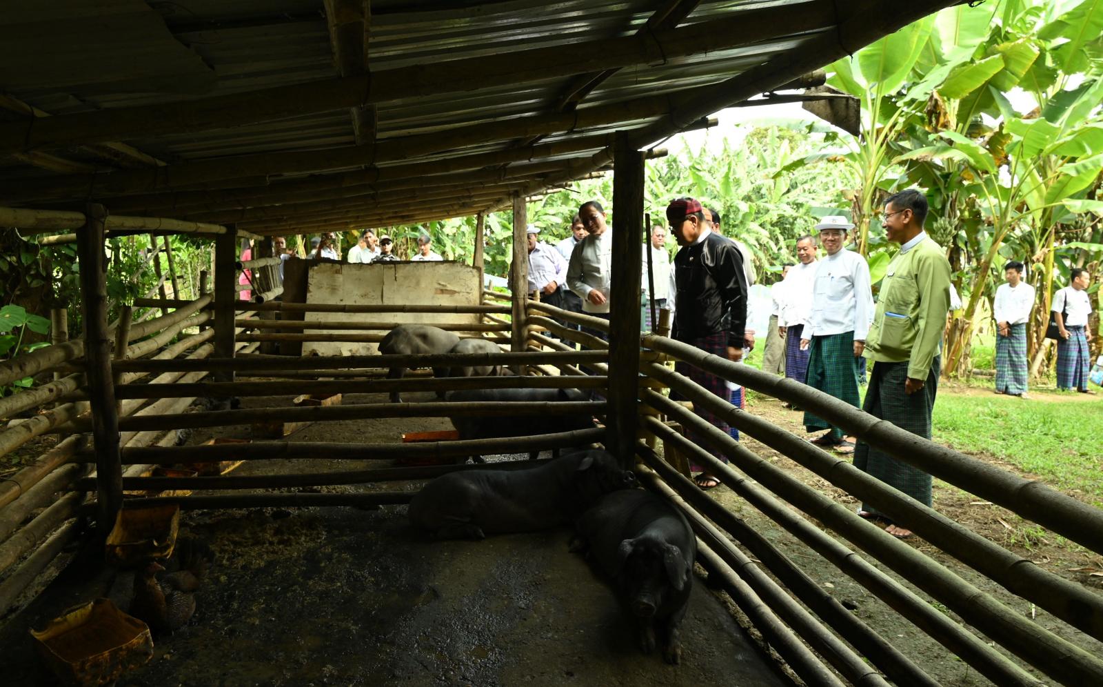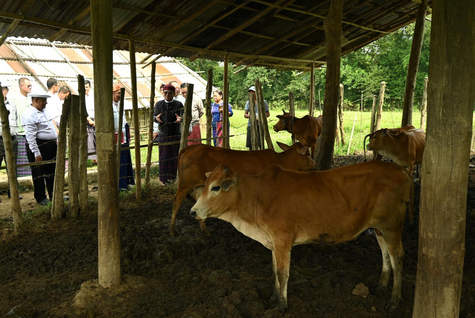 ယင်းနောက် ပြည်နယ်ဝန်ကြီးချုပ်နှင့် တာဝန်ရှိသူများက ခြံဝင်းအတွင်း မွေးမြူထားသည့် ဝက်၊ နွားနှင့် ဆိတ်၊ ငါးများအတွက် ငါးအစာတောင့်အိတ်များ၊ ဝက်ငယ်အစာအိတ်များ၊ မွေးမြူရေးအထောက်အကူပြုဆေးဝါးများ၊ ခြံဖျန်းပိုးသတ်ဆေးများနှင့် တိရစ္ဆာန်အာဟာရ ဖြည့်စွက်အစားအစာများကို ထောက်ပံ့ပေးအပ်ခဲ့ကြသည်။