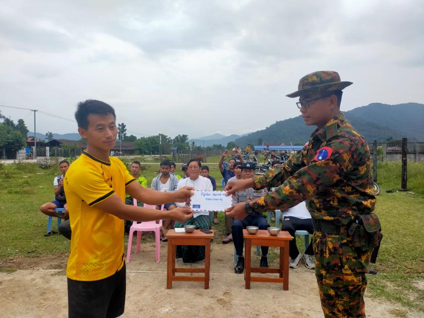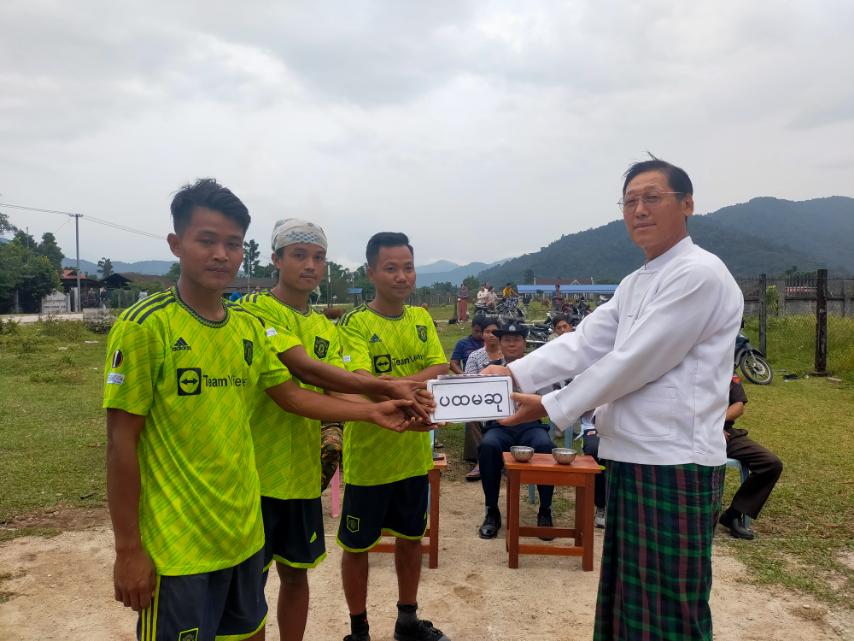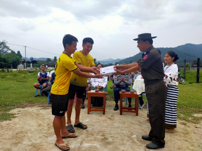 ဆက်လက်၍ ဆုပေးပွဲအခမ်းအနားကိုကျင်းပရာ မြို့နယ်စီမံအုပ်ချုပ်ရေးအဖွဲ့ခေတ္တဥက္ကဋ္ဌ ဦးယုံထန်ဖုန်ရမ်က အဖွင့်အမှာစကားပြောကြားပြီး ဒိုင်အဖွဲ့အား ဂုဏ်ပြုဆုငွေပေးအပ်ခဲ့ကာ ပထမဆုရရှိသော တက်လူအသင်း၊ ဒုတိယဆုရရှိသော ကိုကျော်အသင်းနှင့် တတိယဆုရရှိသော လုံလောင်အသင်းတို့အား တာဝန်ရှိသူများက ဂုဏ်ပြုဆုငွေများ အသီးသီးပေးအပ်ခဲ့ကြကြောင်း သိရသည်။