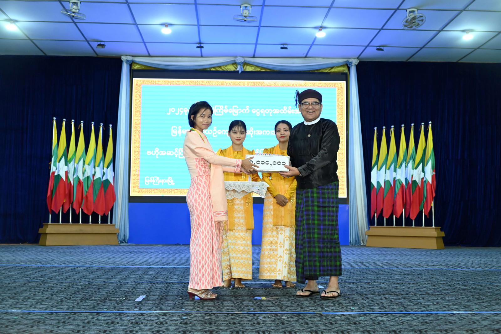 ကချင်ပြည်နယ်ဝန်ကြီးချုပ် ၂၀၂၄ ခုနှစ်၊ (၂၅)ကြိမ်မြောက် ငွေရတုအထိမ်းအမှတ် မြန်မာ့ရိုးရာယဉ် ကျေးမှု အဆို၊ အက၊ အရေး၊ အတီး ဗဟိုအဆင့်ပြိုင်ပွဲဝင် ပြည်နယ်ကိုယ်စားပြု အနုပညာရှင် မောင်/မယ်များအား ကြိုဆိုဂုဏ်ပြု၊ အာဆီယံအပေါင်းသုံးအရေးပေါ်ဆန်အရန်ရိက္ခာ APTERR အစီအစဉ် (၃)အရ ကိုရီးယာသမ္မတနိုင်ငံမှ ကချင်ပြည်နယ်အတွက် လှူဒါန်းသော ဆန်(၄၈၄ ဒဿမ ၂၂)တန်အား လွှဲပြောင်းလက်ခံရယူ