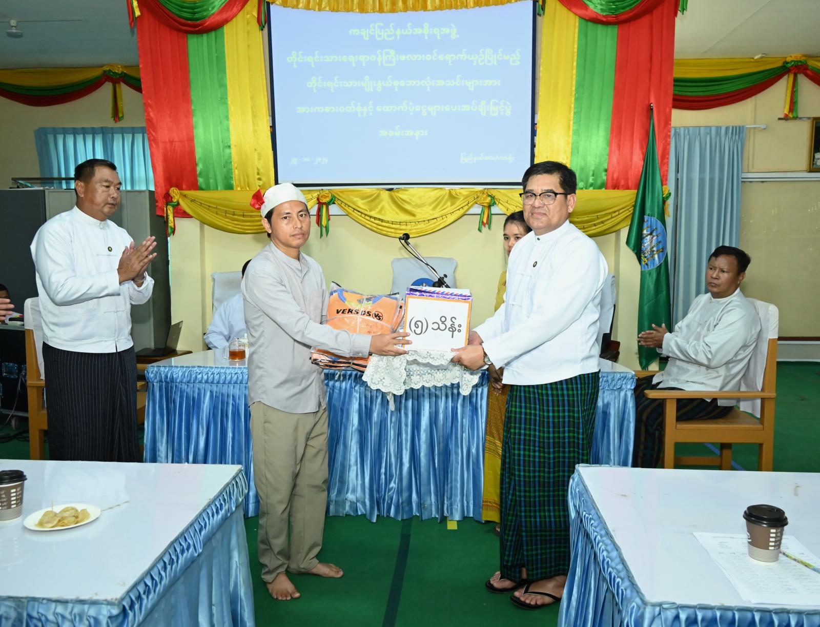ဆက်လက်၍ ပြည်နယ်ဝန်ကြီးချုပ်က ကချင်တိုင်းရင်းသားမျိုးနွယ်စု (၆)မျိုးမှ ပြိုင်ပွဲဝင် ဘောလုံးအသင်းများအတွက် အားကစားဝတ်စုံများနှင့် ထောက်ပံ့ငွေကျပ် (၅)သိန်းစီဖြင့် စုစုပေါင်း ငွေကျပ်သိန်း (၃၀)ကိုလည်းကောင်း၊ ပြည်နယ်တိုင်းရင်းသားရေးရာဝန်ကြီး ဦးကျော်မင်းခိုင်က ရှမ်း တိုင်းရင်းသားမျိုးနွယ်စု (၅)မျိုးနှင့် ဗမာတိုင်းရင်းသားပြိုင်ပွဲဝင် ဘောလုံးအသင်းများအတွက် အားကစားဝတ်စုံများနှင့် ထောက်ပံ့ငွေကျပ် (၅)သိန်းစီဖြင့် စုစုပေါင်းငွေကျပ်သိန်း(၃၀)ကို လည်းကောင်း အသီးသီးထောက်ပံ့ပေးအပ်ရာ တာဝန်ရှိသူတစ်ဦးက ကျေးဇူးတင်စကားပြောကြားသည်။