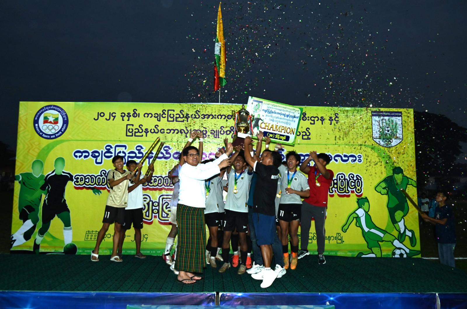 ဆက်လက်၍ ကချင်ပြည်နယ်ဘောလုံးအဖွဲ့ချုပ်ဥက္ကဋ္ဌ ဦးလအောင်က ပထမဆုရအသင်းအတွက် တစ်ဦးချင်းလည်ဆွဲဆုတံဆိပ်နှင့် ဂုဏ်ပြုချီးမြှင့်ငွေကျပ်သိန်း (၃၀)ကိုလည်းကောင်း၊ ပြည်နယ် ဝန်ကြီးချုပ်က ပထမတံခွန်စိုက်ဆုဖလားအားလည်းကောင်း ပေးအပ်ချီးမြှင့်ခဲ့ကြကြောင်း သိရသည်။