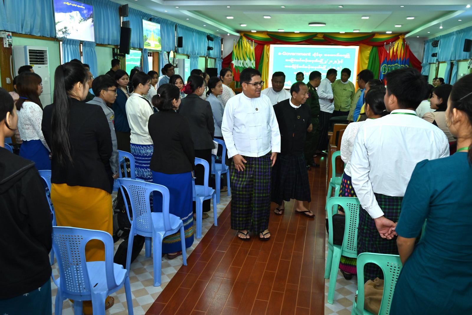 ကချင်ပြည်နယ်အစိုးရအဖွဲ့အနေဖြင့် e-Government လုပ်ငန်းများ လက်တွေ့အကောင်အထည်ဖော်ဆောင်ရွက်ရာတွင် မရှိမဖြစ်လိုအပ်သည့် လူသားအရင်းအမြစ် ဖွံ့ဖြိုးတိုးတက်စေရေးအတွက် ICT နည်းပညာဘာသာရပ်များကို သိရှိနားလည်စေရေး သင်တန်းများ ဖွင့်လှစ်ပေးလျက်ရှိရာ ယနေ့ နံနက် ၁၀ နာရီက ပြည်နယ်အစိုးရအဖွဲ့ရုံးဝင်းအတွင်းရှိ ဆမားဒူဝါဆင်ဝါးနော်ခန်းမ၌ e-Government ဆိုင်ရာ အထောက်အကူပြု အခြေခံသင်တန်းနှင့် အဆင့်မြင့်သင်တန်း အမှတ်စဉ် (၂/၂၀၂၄) ဖွင့်ပွဲအခမ်းအနားကို ကျင်းပပြုလုပ်ခဲ့ကြသည်။