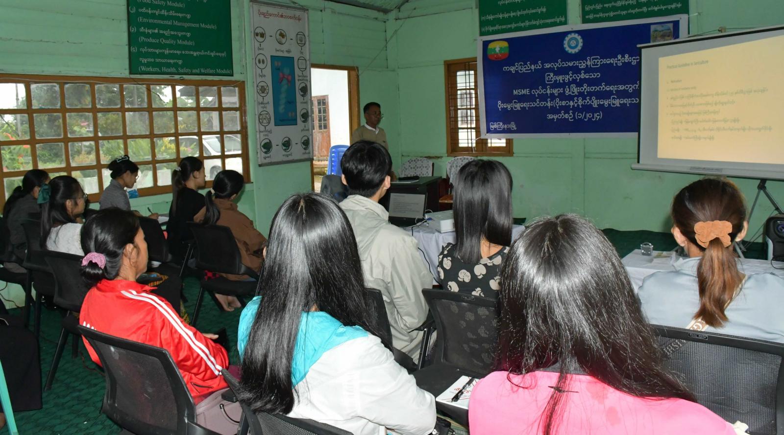 ကချင်ပြည်နယ်အလုပ်သမားညွှန်ကြားရေးဦးစီးဌာနမှ ကြီးမှူး၍ MSME လုပ်ငန်းများ ဖွံ့ဖြိုးတိုးတက်ရေးဆိုင်ရာ ကျွမ်းကျင်လုပ်သားများ မွေးထုတ်ပေးနိုင်ရေး ဒေသလိုအပ်ချက်နှင့် ကိုက်ညီသော ပိုးမွေးမြူရေးသင်တန်း (ပိုးစာနှင့် စိုက်ပျိုးမွေးမြူရေးသင်တန်း) (၁/၂၀၂၄) ဖွင့်ပွဲကို ယမန်နေ့ နံနက် ၈ နာရီက မန်ခိန်ရပ်ကွက်ရှိ မြစ်ကြီးနားမြို့ စိုက်ပျိုးရေးဦးစီးဌာန၊ ဝါးနှင့်လျှော်မျှင်ထွက်သီးနှံဌာနခွဲ ပိုးစာခြံသင်တန်းခန်းမ၌ ကျင်းပခဲ့သည်။
