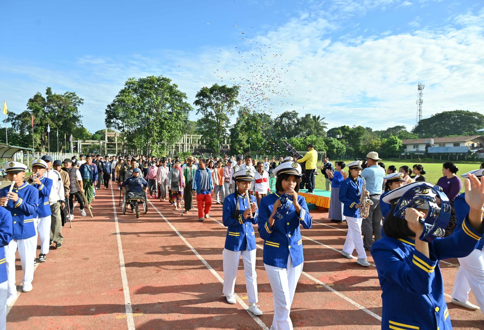 ထို့အပြင် ပြည်နယ်ဝန်ကြီးချုပ်နှင့် ဇနီးဒေါ်နန်ဆိုင်း၊ ပြည်နယ်အစိုးရအဖွဲ့ဝင် ဝန်ကြီးများနှင့် ၎င်းတို့၏ ဇနီးများ၊ ပြည်နယ်အဆင့်ဌာနဆိုင်ရာ တာဝန်ရှိသူများသည် ယနေ့နံနက် ၈ နာရီကလည်း ပြည်နယ်ပြည်သူ့အားကစားကွင်းအတွင်း၌ ၂၀၂၄ ခုနှစ်၊ ပဉ္စမအကြိမ်မြောက် အမျိုးသားအားကစားပွဲတော်အား ကြိုဆိုဂုဏ်ပြုသောအားဖြင့် မသန်စွမ်းသူများအားကစားလှုပ်ရှားမှုအဖြစ် စုပေါင်းလမ်းလျှောက်ပွဲ အခမ်းအနားတက်ရောက်ခဲ့ကြသည်။