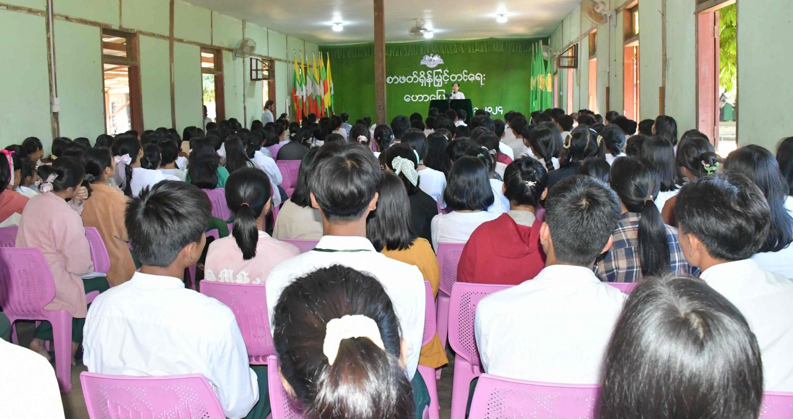 ကချင်ပြည်နယ်၊ မြစ်ကြီးနားမြို့၊ အမှတ် (၆) အခြေခံပညာအထက်တန်းကျောင်းခန်းမ၌ စာဖတ်ရှိန်မြှင့်တင်ရေးအသိပညာပေးဟောပြောပွဲကို ယနေ့ နံနက် ၁၀ နာရီက ကျင်းပပြုလုပ်ရာ ပြည်နယ်ပြန်ကြားရေးနှင့်ပြည်သူ့ဆက်ဆံရေးဦးစီးဌာနမှ ဒုတိယညွှန်ကြားရေးမှူး ဒေါ်ငုချိုချိုကျော်က အဖွင့်အမှာစကားပြောကြားသည်။