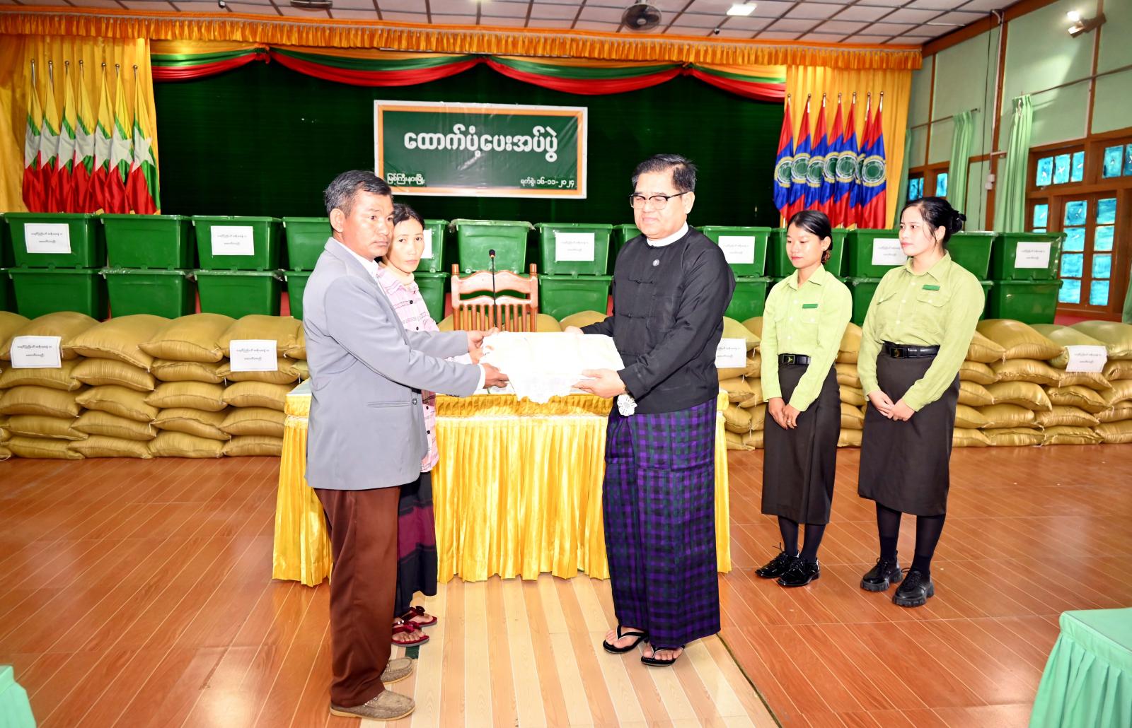 ကချင်ပြည်နယ်အတွင်း ၂၀၂၄ ခုနှစ်၊ ဇွန်လ ၃၁ ရက်နေ့နှင့် ဇူလိုင် ၁ ရက်နေ့များတွင် ဧရာဝတီမြစ်အထက်ပိုင်းတွင် မိုးသည်းထန်စွာ အဆက်မပြတ် ရွာသွန်းမှုကြောင့် စံချိန်တင်မြစ်ရေ ကြီးမြင့်မှု ဖြစ်ပေါ်ခဲ့သဖြင့် ရေဘေးသင့်ပြည်သူများအား စဉ်ဆက်မပြတ် ထောက်ပံ့ပေးခဲ့ရာ ကချင်ပြည်နယ်ဝန်ကြီးချုပ် ဦးခက်ထိန်နန်သည် ယမန်နေ့နံနက် ၉ နာရီခွဲက အဆိုပါရေဘေးသင့် ပြည်သူများအနက် ဝိုင်းမော်မြို့နယ်၊ နောင်ချိန်းကျေးရွာအုပ်စုအတွင်းမှ ကျန်ရှိသည့် ရေဘေးသင့်ပြည်သူများအား ထောက်ပံ့ပေးအပ်ပွဲ အခမ်းအနားကို ကျင်းပပြုလုပ်ခဲ့သည်။