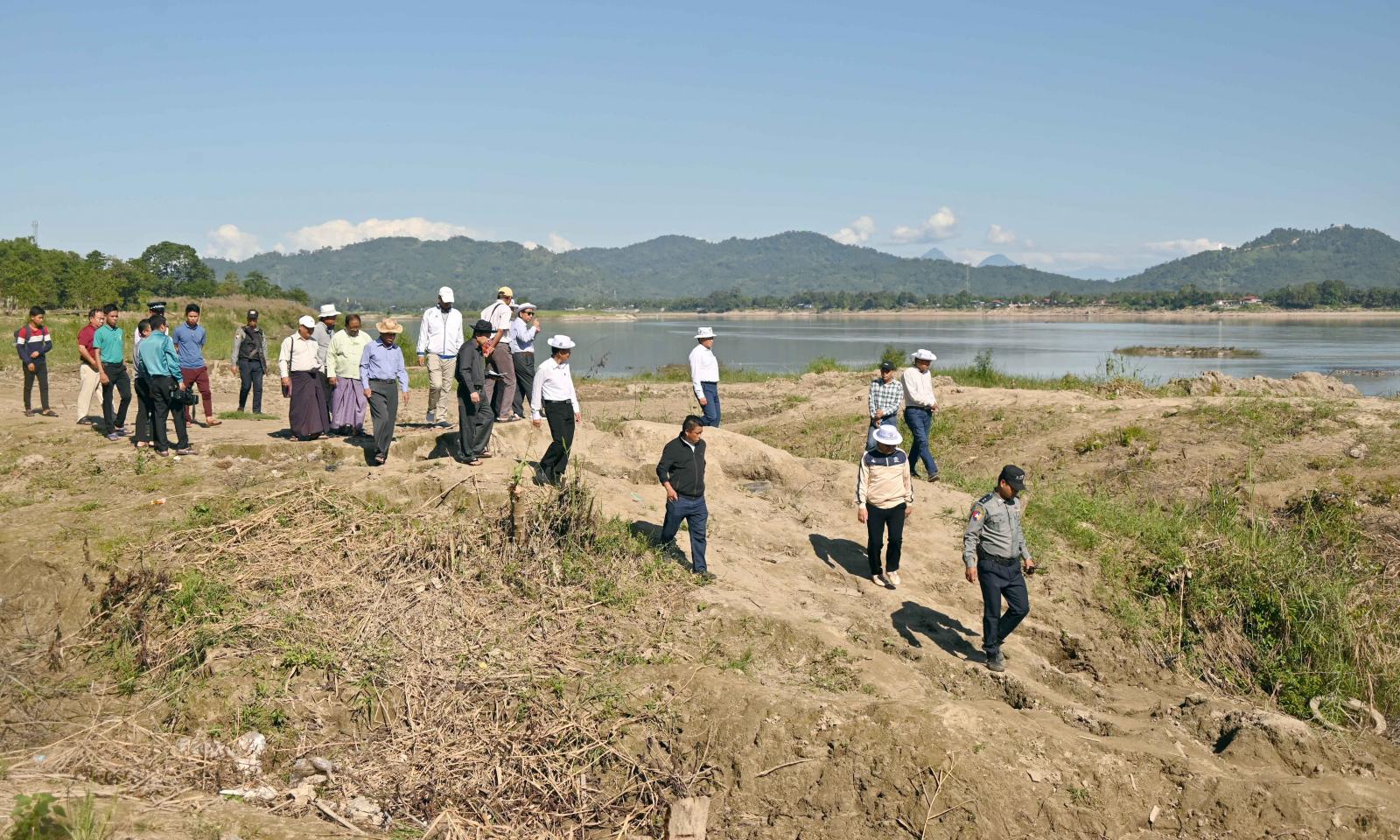 ယင်းနောက် ပြည်နယ်ဝန်ကြီးချုပ်နှင့်အဖွဲ့ဝင်များသည် အင်ဂျန်းချောင်းဝမှ မနောကွင်းရှေ့ သဲသောင်ခုံပေါ်တွင် အများပြည်သူအပန်းဖြေအနားယူနိုင်သည့်နေရာတစ်ခုဖြစ်လာစေရေး၊ မြစ်ကမ်း ဘေးပန်းခြံတည်ထောင်နိုင်ရေး ဆောင်ရွက်သွားမည့် အစီအမံများကို ကြည့်ရှုစစ်ဆေးခဲ့ကြပြီး အဆိုပါနေရာမှ စီတာပူရပ်ကွက် ကျောက်စိမ်းလမ်းအထိ မြစ်ကမ်းပါးတစ်လျှောက် ရေကြီးနစ်မြုပ်မှုမှ ကြိုတင်ကာကွယ်နိုင်ရေး ကမ်းထိန်းနံရံ၊ ရေတားတမံ တည်ဆောက်သွားမည့်နေရာများတွင် နေအိမ်နှင့်ဆိုင်ခန်းများ ကျူးကျော်ဆောက်လုပ်ထားရှိမှုတို့ကို လှည့်လည်ကြည့်ရှုစစ်ဆေးခဲ့ကြကာ ပြည်နယ်ဝန်ကြီးချုပ်က မြစ်ဧရိယာနှင့်မလွတ်သည့်နေရာများအား ဥပဒေနှင့်အညီ ကြိုတင်အသိပေး ရှင်းလင်းဖယ်ရှားနိုင်ရေးနှင့် သဲသောင်ခုံပေါ်တွင် ဆီထွက်သီးနှံ ဆီမုန်ညှင်း၊ နေကြာနှင့်ပန်းနှမ်းများ တိုးချဲ့စိုက်ပျိုးနိုင်ရေးနှင့် အများပြည်သူအား ရေကြီးရေလျှံမှုမှ ကာကွယ်သွားမည့် စီမံကိန်းလုပ်ငန်းများနှင့်စပ်လျဉ်း၍ သိရှိနားလည်စေရေး ရှင်းလင်းဆွေးနွေးပွဲ ဆောင်ရွက်နိုင်ရေး ဌာနဆိုင်ရာတာဝန်ရှိသူများနှင့် ပေါင်းစပ်ညှိနှိုင်းဆောင်ရွက်ပေးခဲ့ကြောင်း သိရသည်။