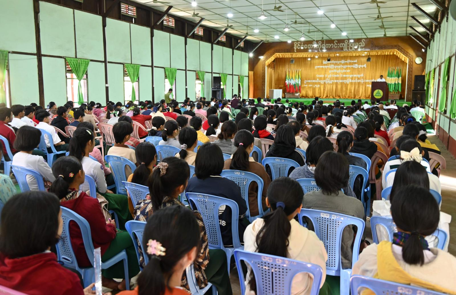 ဥပဒေရေးရာဝန်ကြီးဌာနနှင့် ပညာရေးဝန်ကြီးဌာနတို့ပူးပါင်းပြီး ကချင်ပြည်နယ်ဥပဒေချုပ်ရုံး မှ ကြီးမှူး၍ အခြေခံပညာဌာနမှ Grade-11 နှင့် Grade-12 ဆရာ/ ဆရာမများအား ဥပဒေအသိ ပညာပြန့်ပွားရေး ဆရာအဖြစ်သင်တန်း (Training of Trainer) ဖွင့်ပွဲ အခမ်းအနားကို ယမန်နေ့နံနက် (၉) နာရီက အမှတ်(၁) အခြေခံပညာအထက်တန်းကျောင်း၊ အေးမြသီတာခန်းမ၌ ကျင်းပပြုလုပ်ရာ ပြည်နယ်ဝန်ကြီးချုပ် ဦးခက်ထိန်နန် တက်ရောက်အမှာစကားပြောကြားသည်။