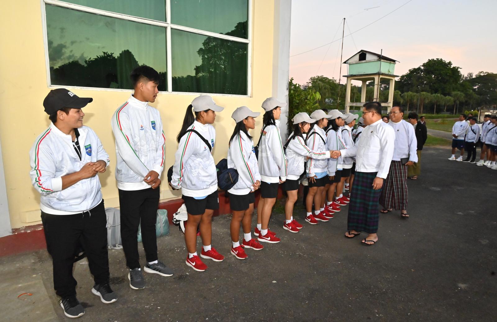 ကချင်ပြည်နယ်အနေဖြင့် နေပြည်တော်တွင်ကျင်းပမည့် အမျိုးသားအားကစားပွဲတော်တွင် အားကစားနည်း(၂၃)မျိုးအနက် အားကစားနည်း(၂၁)မျိုးတွင် ပါဝင်ယှဉ်ပြိုင်သွားမည်ဖြစ်ရာ အုပ်ချုပ်သူ/နည်းပြနှင့် အားကစားသမားများအပါအဝင် လူဦးရေ စုစုပေါင်း(၃၈၈)ဦးဖြင့် စနစ်တကျစုဖွဲ့၍ သွားရောက်ယှဉ်ပြိုင်နိုင်ရေး စီမံဆောင်ရွက်ခဲ့ရာ အားကစားအသင်းများအား နိုဝင်ဘာ၂၄ ရက်က လေကြောင်းခရီးဖြင့်(၃)ကြိမ် ပို့ဆောင်ပေးခဲ့ပြီး ယနေ့ပြည်နယ်ဝန်ကြီးချုပ်နှင့်အဖွဲ့ဝင်များက ကျန်ရှိနေသည့် အားကစားအသင်းများအား လိုက်ပါပို့ဆောင်နှုတ်ဆက် အားပေးခဲ့ခြင်းဖြစ်ကြောင်း သိရသည်။