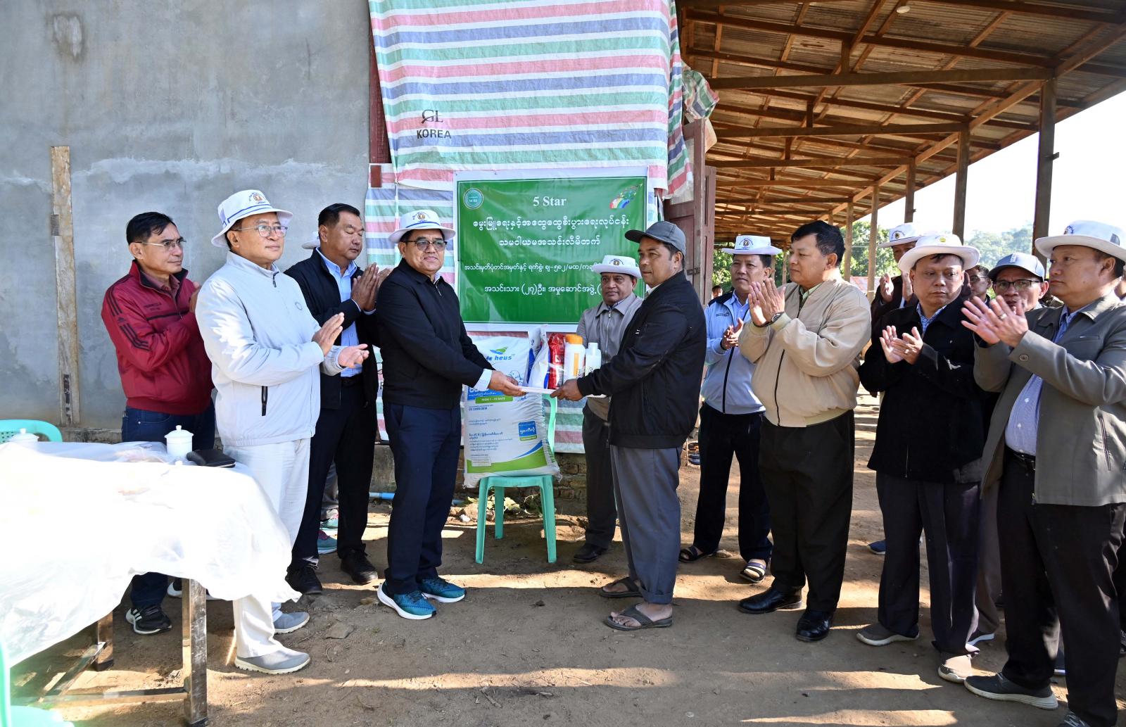 ထို့နောက် ပြည်နယ်ဝန်ကြီးချုပ်က ကြက်မွေးမြူရေးသမဝါယမအသင်းထံ စွမ်းအားပြည့်ရော စပ်အစာမှုန့်များ၊ ခြံဖျန်းပိုးသတ်ဆေးများ၊ ကြက်အစာအိတ်များနှင့် မွေးမြူရေးအထောက်အကူပြု ဆေးဝါးများကို ထောက်ပံ့ပေးအပ်ခဲ့ကြသည်။