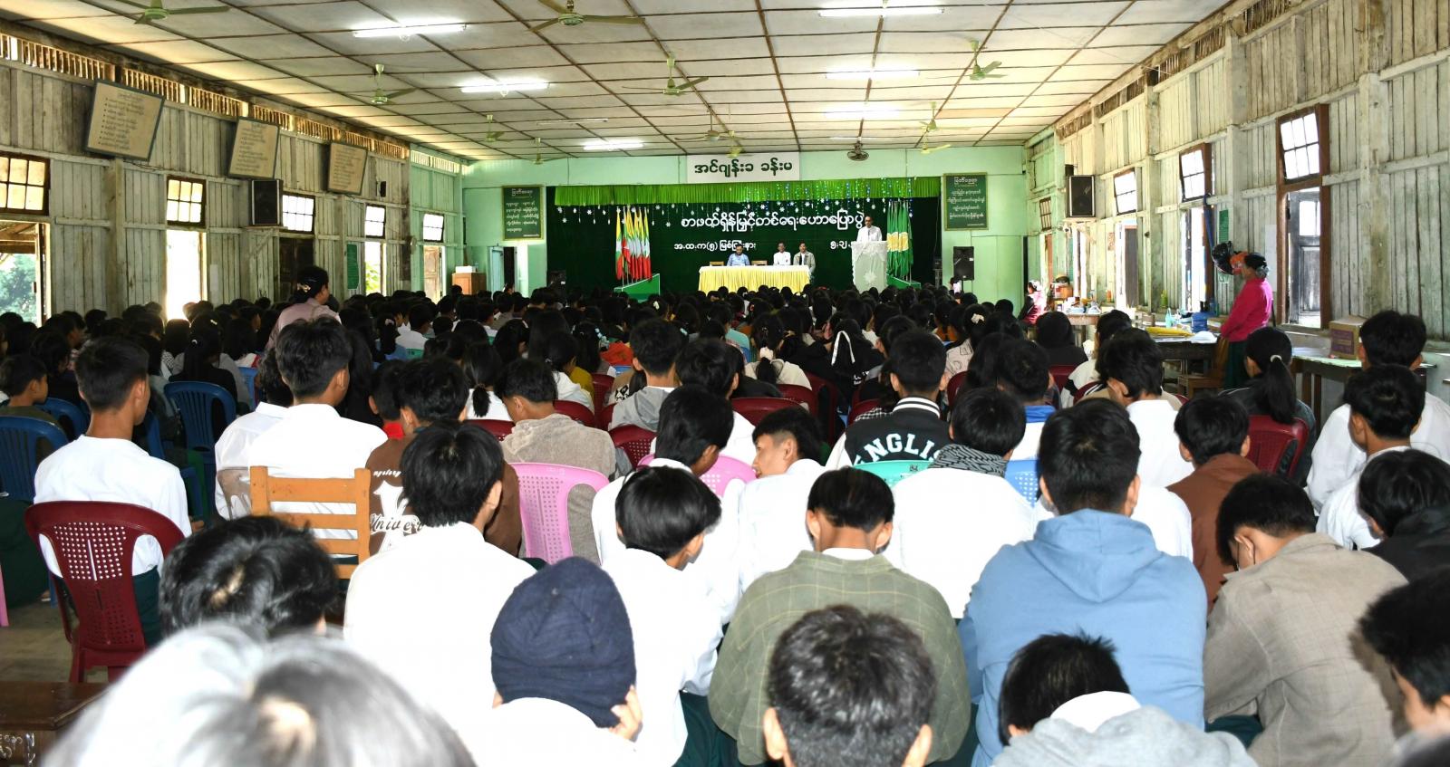 ကချင်ပြည်နယ်၊ မြစ်ကြီးနားမြို့ အမှတ် (၅) အခြေခံပညာအထက်တန်းကျောင်းရှိ အင်ဂျန်းခန်းမ၌ စာဖတ်ရှိန်မြှင့်တင်ရေးအသိပညာပေးဟောပြောပွဲကို ဒီဇင်ဘာလ ၅ ရက် နံနက် ၉ နာရီခွဲက ကျင်းပခဲ့သည်။