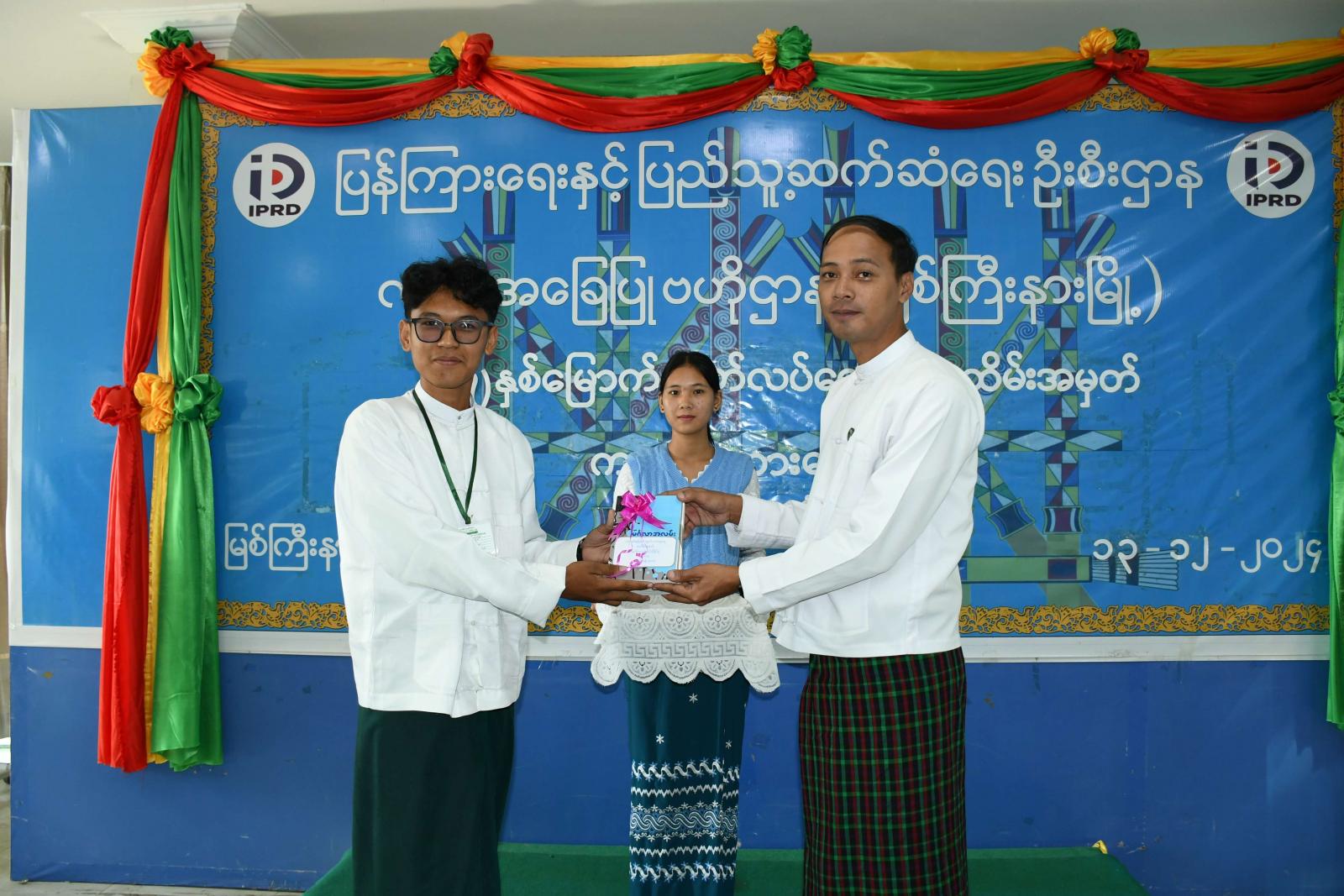ထို့နောက် ဆုချီးမြှင့်ပွဲအခမ်းအနားအား ဆက်လက်ကျင်းပရာ ပြန်ကြားရေးနှင့်ပြည်သူ့ဆက်ဆံရေးဦးစီးဌာနမှ ပြည်နယ်ဦးစီးမှူး ဦးအောင်ကျော်ထက်က ပြိုင်ပွဲများကျင်းပပေးရသည့် ရည်ရွယ်ချက်များအား ရှင်းလင်းပြောကြားကာ ကချင်ပြည်နယ် စာကြည့်တိုက်များဖောင်ဒေးရှင်း ဥက္ကဋ္ဌ စာရေးဆရာ အကြီးကိုကို(ကသာ) က အမှတ်ပေးစည်းမျဉ်းစည်းကမ်းချက်များအား ရှင်းလင်းပြောကြားပြီး တာဝန်ရှိသူများက ပြိုင်ပွဲများတွင် ဆုရရှိသော ကျောင်းသား/သူများအား ဂုဏ်ပြုဆုများ ပေးအပ်ချီးမြှင့်ခဲ့ကြသည်။