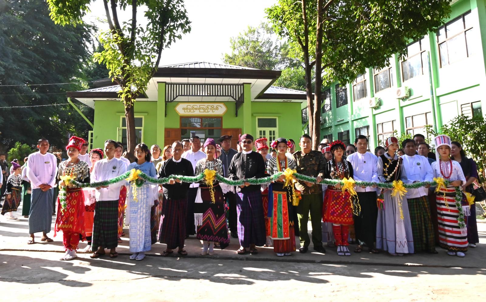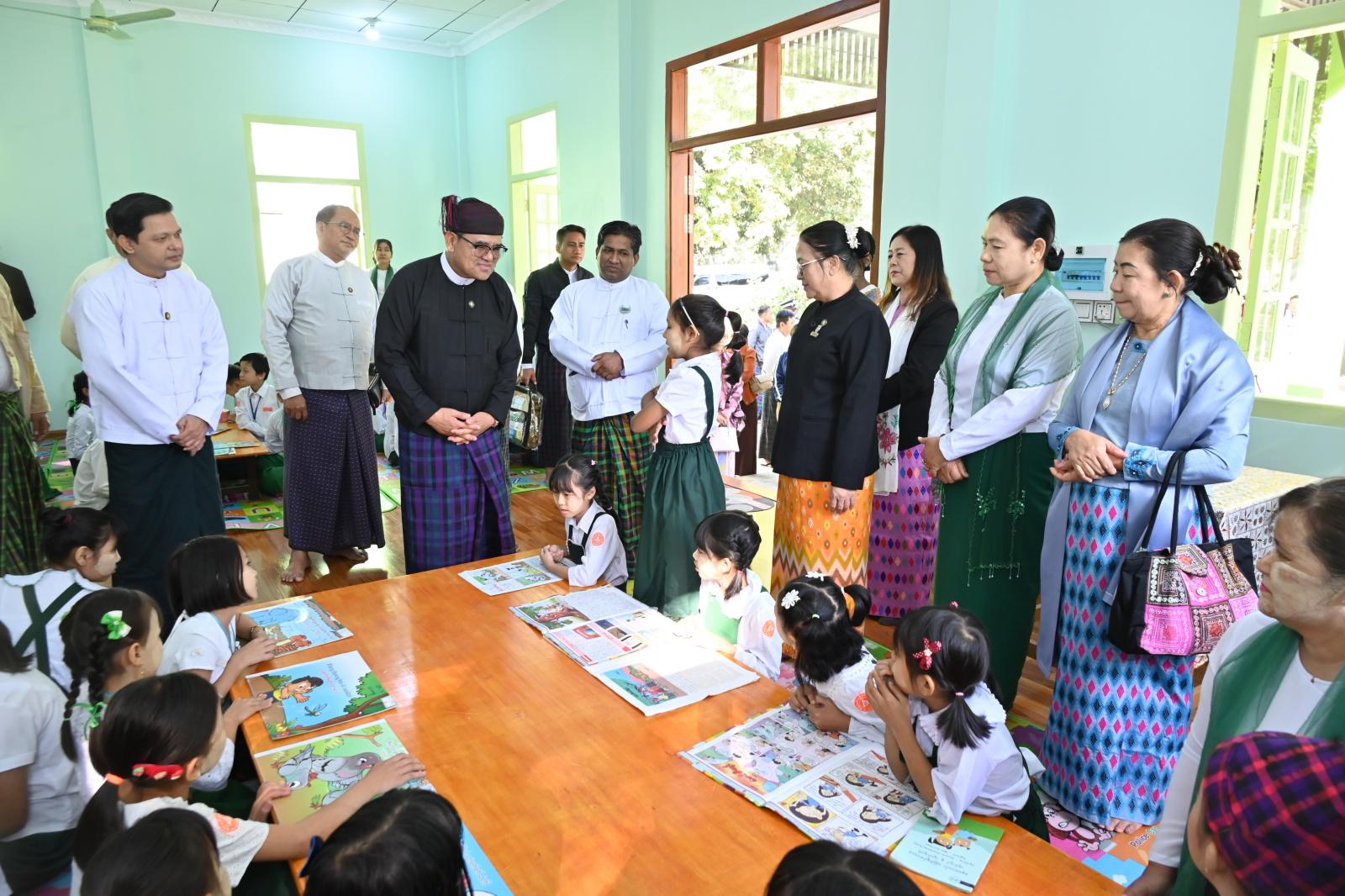 ရှေးဦးစွာ စာကြည့်တိုက်ကို ပြည်နယ်ဝန်ကြီးချုပ်၊ ပြည်နယ်တရားလွှတ်တော်တရားသူကြီးချုပ်၊ ပြည်နယ်အစိုးရအဖွဲ့ဝင် ဝန်ကြီးများနှင့် ကျောင်းသားဟောင်းတစ်ဦးတို့က ဖဲကြိုးဖြတ်ဖွင့်လှစ်ပေးကြပြီး ပြည်နယ်ဝန်ကြီးချုပ်က စာကြည့်တိုက်အတွက် ငွေကျပ် ၁၀ သိန်းကို ပေးအပ်ချီးမြှင့်သည်။ ထို့နောက် စာကြည့်တိုက်အဆောက်အအုံသစ်အတွင်း စာကြည့်တိုက်အင်္ဂါရပ်နှင့်အညီ ပြင်ဆင်ဖွဲ့စည်းထားရှိမှု အခြေအနေများနှင့် ကျောင်းသား/ ကျောင်းသူလေးများ၏ စာဖတ်ဝိုင်း ကျင်းပပြုလုပ်နေမှုကို လှည့်လည်ကြည့်ရှုအားပေးခဲ့ကြကာ ပြည်နယ်ဝန်ကြီးချုပ်က ကျောင်းသား/ ကျောင်းသူလေးများအား ဖတ်ရှုလေ့လာထားသည့် စာအုပ်စာပေများအပေါ် ဖတ်၊ မှတ်၊ ပြောစွမ်းရည်အား မေးမြန်းအားပေးကာ ဆုငွေများကို ဂုဏ်ပြုချီးမြှင့်သည်။