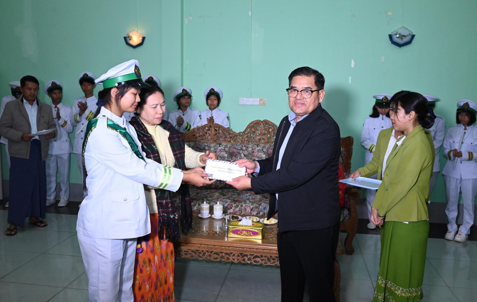 ဆက်လက်၍ အားကစားနည်းအလိုက် အုပ်ချုပ်သူ/ နည်းပြများက ပြိုင်ပွဲများအလိုက် ပါဝင်ယှဉ်ပြိုင်ခဲ့သည့် အတွေ့အကြုံများနှင့် ဆုတံဆိပ်ရရှိမှုအခြေအနေများကို အသီးသီးရှင်းလင်းတင်ပြခဲ့ကြရာ ပြည်နယ်ဝန်ကြီးချုပ်က အားကစားနည်းအလိုက် နောင်လာမည့် ပြိုင်ပွဲများတွင် ယခုကဲ့သို့ ပြည်နယ်အတွက် ဂုဏ်ယူရသည့် ပါရမီပြည့်ဝသော မျိုးဆက်သစ်လူငယ်များ မွေးထုတ်၍ စနစ်တကျလေ့ကျင့်ထားရှိရေး တိုက်တွန်အားပေးခဲ့ပြီး ကြိုဆိုဂုဏ်ပြုခဲ့ကြသည့် ဘင်ခရာအဖွဲ့အား ချီးမြှင့်ငွေများပေးအပ်ခဲ့သည်။