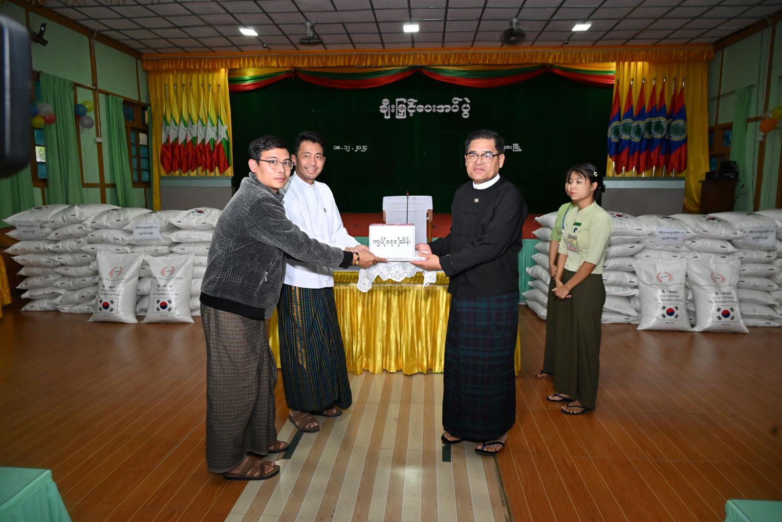 ဆက်လက်၍ ပြည်နယ်ဝန်ကြီးချုပ်နှင့် တာဝန်ရှိသူများက ဝန်ထမ်းများနှင့် ဝန်ထမ်းမိသားစုများအတွက် အာဆီယံ +3 အရေးပေါ်ဆန်အရန်ရိက္ခာ (APTERR) အစီအစဉ်(၃)အရ ကိုရီးယားသမ္မတနိုင်ငံမှလှူဒါန်းသော ကီလိုဂရမ်(၄၀)ပါ ဆန်အိတ် (၁၇၁)အိတ်၊ စားအုန်းဆီ (၁)ပိဿာစီနှင့် ငွေကျပ် (၁) သိန်းစီ ပေးအပ်ချီးမြှင့်ခဲ့ကြကြောင်း သိရသည်။