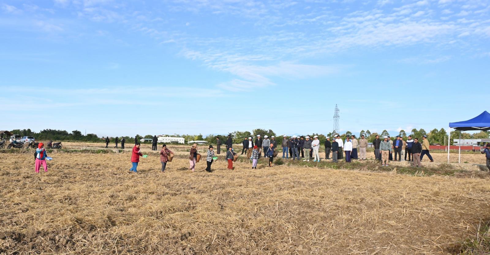ထို့နောက် ပြည်နယ်ဝန်ကြီးချုပ်နှင့် ပြည်နယ်ဝန်ကြီးများက စိုက်ကွင်းအတွင်းရှိ တောင်သူများအတွက် စိုက်ပျိုးရေးဦးစီးဌာနက အခမဲ့ပံ့ပိုးပေးအပ်သည့် ရေဆင်း(၁၅)ပဲပုပ်မျိုးစေ့၊ ဆင်း(၃)စပ်မျိုး နေကြာမျိုးစေ့အိတ်များနှင့် သဘာဝမြေသြဇာအိတ်များကို ပေးအပ်ချီးမြှင့်ခဲ့ကြပြီး တောင်သူများ၏လယ်များအတွင်း နေကြာမျိုးစေ့များ စုပေါင်းကြဲပက်သရုပ်ပြသမှုများနှင့် စက်မှုလယ်ယာဦးစီးဌာနမှ လယ်ထွန်စက်များဖြင့် ထယ်ရေးထွန်ယက်ပေးနေမှုများကို တောင်သူများနှင့်အတူ ကြည့်ရှုအားပေးခဲ့ကြသည်။