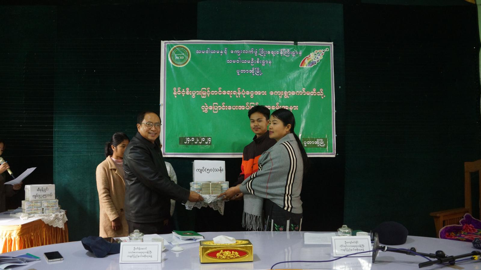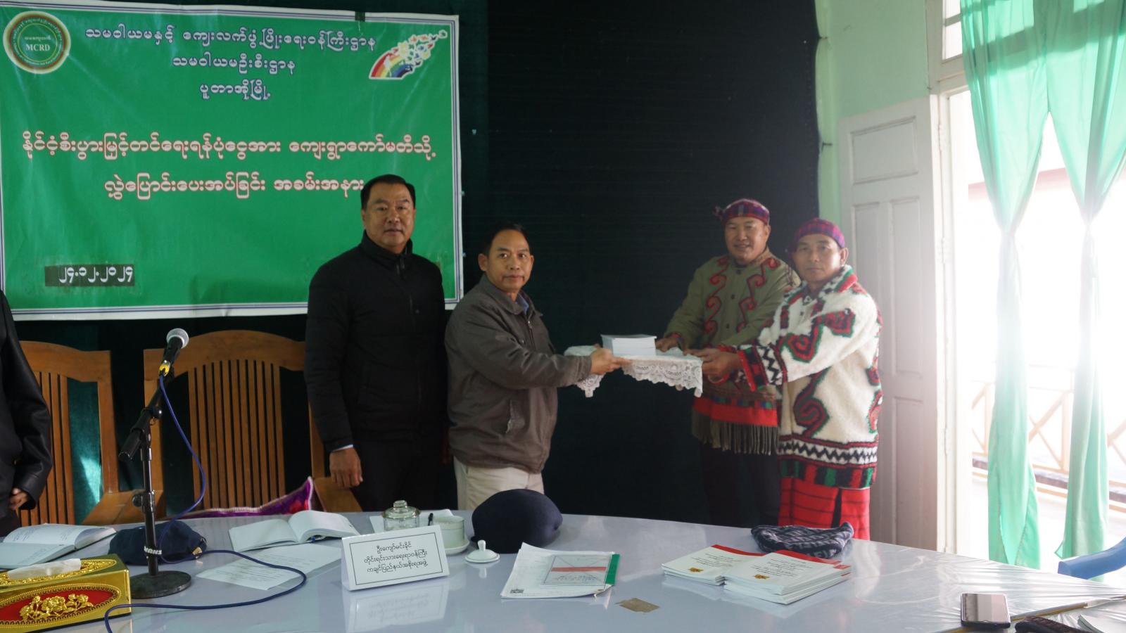 ကချင်ပြည်နယ်၊ ပူတာအိုခရိုင် ဖွံ့ဖြိုးတိုးတက်ရေးတာဝန်ခံ ကချင်ပြည်နယ်အစိုးရအဖွဲ့ဝင် ပြည်နယ်သယံဇာတရေးရာဝန်ကြီး ဉီးတိန့်ဆောင်၊ တိုင်းရင်းသားရေးရာဝန်ကြီး ဉီးကျော်မင်းခိုင်တို့သည် ပြည်နယ်တိုင်းရင်းသားအခွင့်အရေးများ ကာကွယ်စောင့်ရှောက်ရေးဉီးစီးဌာန ပြည်နယ်ဉီးစီးမှူး ဉီးရန်နိုင်လွင်နှင့်အတူ ယမန်နေ့ နံနက်(၈)နာရီက ပူတာအိုခရိုင် အထွေထွေအုပ်ချုပ်ရေးဉီးစီးဌာနရုံး အစည်းအဝေးခန်းမ၌ နိုင်ငံ့စီးပွားမြှင့်တင်ရေးရန်ပုံငွေအား ကျေးရွာကော်မတီသို့ လွှဲပြောင်းပေးအပ်ခြင်း အခမ်းအနားတက်ရောက်သည်။