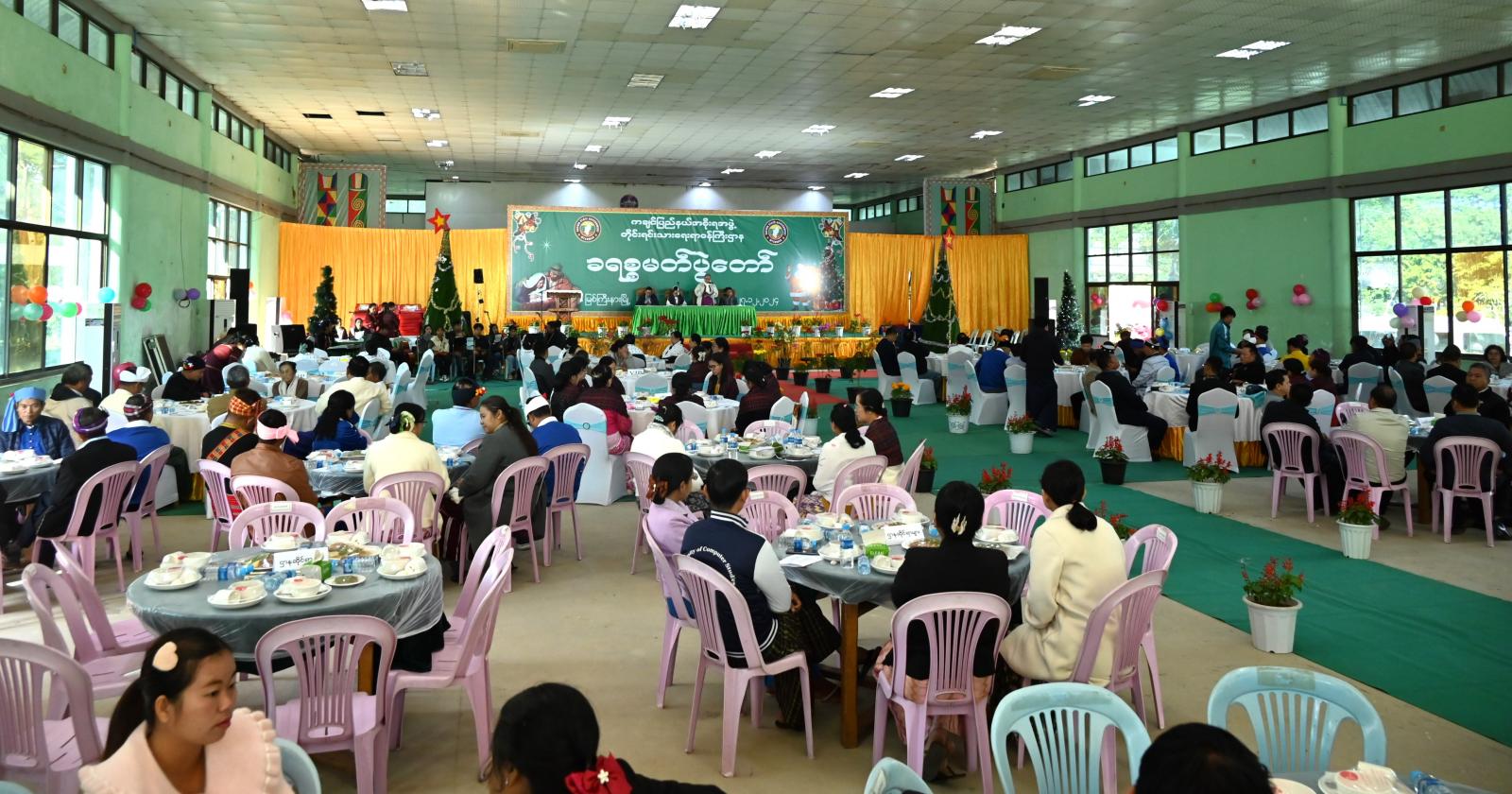ကချင်ပြည်နယ်အစိုးရအဖွဲ့ဝင် တိုင်းရင်းသားရေးရာဝန်ကြီးဌာနမှကြီးမှူး၍ ဌာနေတိုင်းရင်းသားမျိုးနွယ်စုများ စုပေါင်းကျင်းပသည့် ခရစ်တော်မွေးနေ့ အထိမ်းအမှတ် ခရစ္စမတ်ပွဲတော် ဝတ်ပြုဆုတောင်းပွဲအခမ်းအနားကို နှစ်စဉ် ကျင်းပလေ့ရှိရာ ၂၀၂၄ ခုနှစ်၊ တိုင်းရင်းသားရေးရာဝန်ကြီးဌာန၏ ခရစ္စမတ်ပွဲတော် ဝတ်ပြုဆုတောင်းပွဲအခမ်းအနားကို ဒီဇင်ဘာ ၂၇ ရက် နံနက် ၉ နာရီက မြစ်ကြီးနားမြို့ စီတာပူမနောကွင်းအတွင်းရှိ မဂျွယ်ခန်းမ၌ ကျင်းပပြုလုပ်ရာ ပြည်နယ်ဝန်ကြီးချုပ် ဦးခက်ထိန်နန်နှင့် ဇနီးဒေါ်နန်ဆိုင်း၊ တာဝန်ရှိသူများ တက်ရောက်ခဲ့ကြသည်။