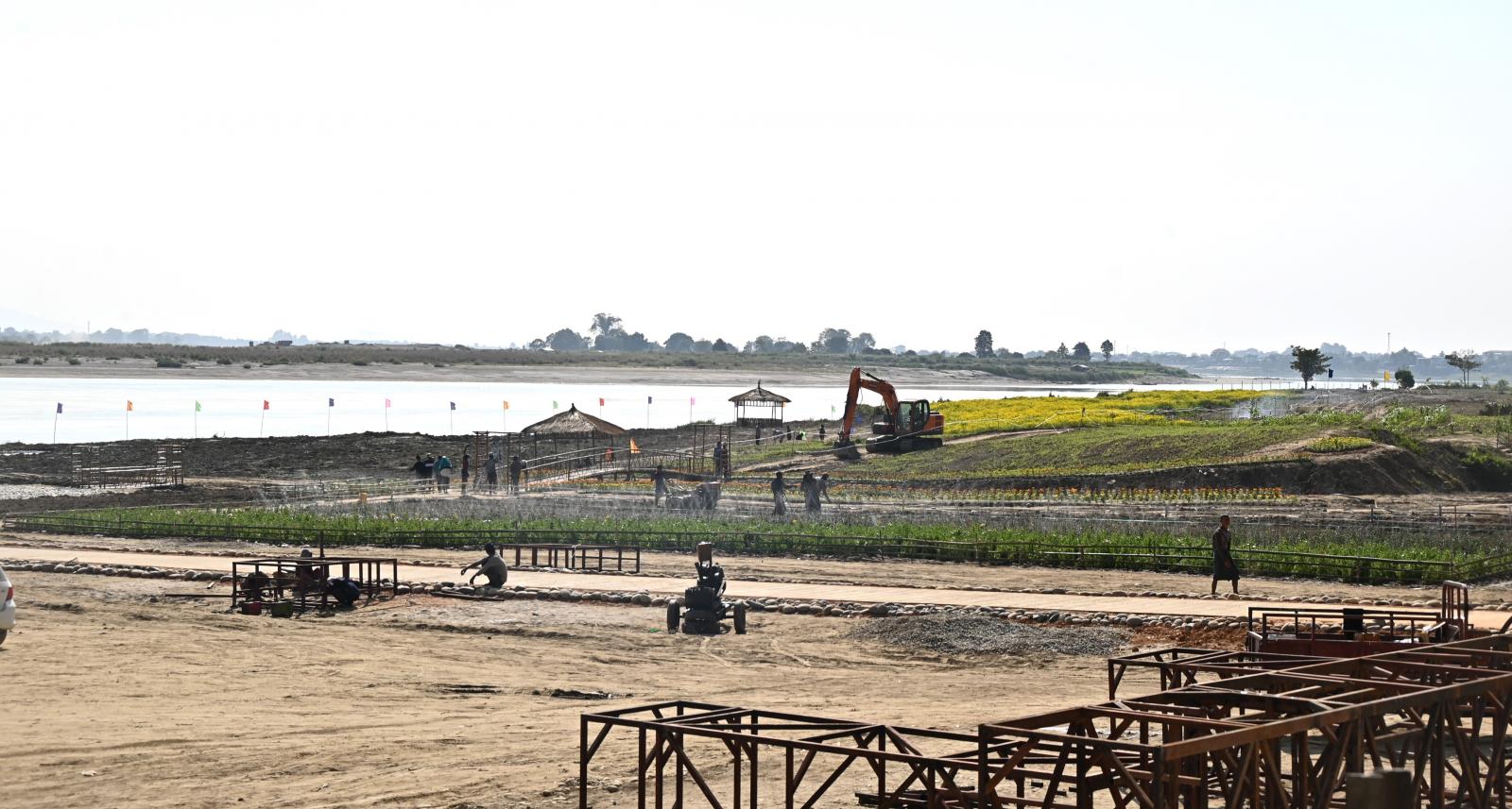 ယင်းနောက် ပြည်နယ်ဝန်ကြီးချုပ်နှင့် ဇနီး၊ ပြည်နယ်ဝန်ကြီးများနှင့် ၎င်းတို့၏ ဇနီးများ၊ ပြည်နယ် အဆင့်ဌာနဆိုင်ရာများသည် အဆိုပါ မနောကွင်းအရှေ့ဘက် လုံဂါဘာစားသောက်ဆိုင်အနီး ဧရာဝတီမြစ်ဆိပ်၌ ၂၀၂၅ ခုနှစ်၊ ဇန်နဝါရီ (၁၀)ရက်နေ့တွင် ကျရောက်မည့် ကချင်ပြည်နယ်နေ့အထိမ်းအမှတ် ဖွင့်လှစ်နိုင်ရေး ပြည်နယ်အစိုးရအဖွဲ့က ကြီးကြပ်ဆောင်ရွက်လျက်ရှိသည့် ဧရာဝတီရှုခင်းသားအပန်းဖြေစခန်း အကောင်အထည်ဖော်ဆောင်ရွက်နေမှု အခြေအနေများနှင့် စပ်လျဉ်း၍ ဆောင်ရွက်ပြီးစီးမှု အခြေအနေများ၊ ဆောင်ရွက်ဆဲလုပ်ငန်းအခြေအနေများကို ကြည့်ရှုစစ်ဆေးခဲ့ကြသည်။