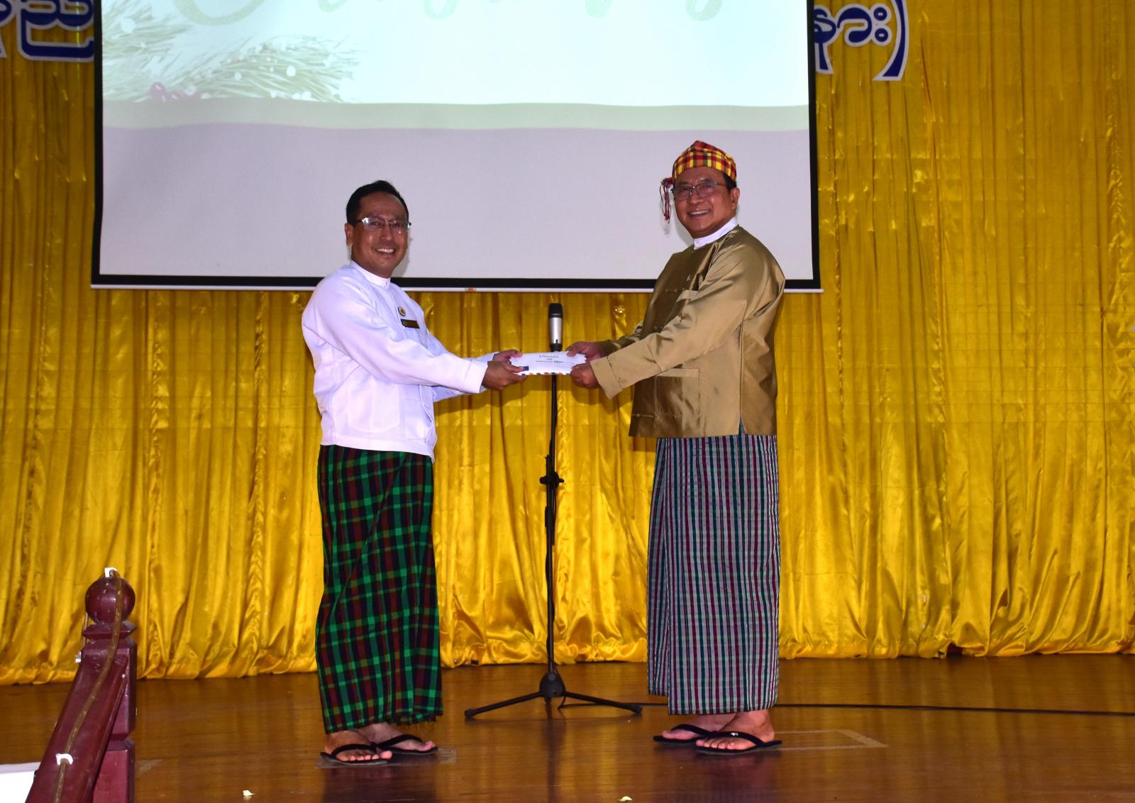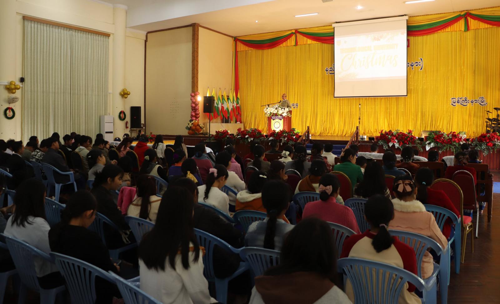 ရှေးဦးစွာ ခရစ်တော်မွေးနေ့အထိမ်းအမှတ် ဝတ်ပြုဆုတောင်းပွဲတွင် နှစ်ခြင်းခရစ်ယာန်အသင်းတော် သိက္ခာတော်ရဆရာတော်များနှင့် သင်းထောက်များ ဦးဆောင်၍ ဝတ်ပြုဆုတောင်းပွဲ အစပြု ဆုတောင်းဆက်ကပ်ပေးကြပြီး ပြည်နယ်ဝန်ကြီးက ခရစ်တော်မွေးနေ့မြတ်အချိန်အခါကာလ တွင် ယခုလို နည်းပညာတက္ကသိုလ် ဒုတိယပါမောက္ခချုပ်၊ ဌာနမှူးများ၊ တာဝန်ရှိသူများ၊ ကျောင်းသား/ ကျောင်းသူများနှင့်အတူအတူတကွ ကျေးဇူးတော်ချီးမွမ်းခွင့်၊ ဆုတောင်းဆက်ကပ်အပ်နှံခွင့် ရရှိသည့်အတွက် ဝမ်းမြောက်ဝမ်းသာဂုဏ်ယူပါကြောင်း ကြိုဆိုနှုတ်ခွန်းဆက်စကားပြောကြားကာ ပြည်နယ်ဝန်ကြီးက တက္ကသိုလ်ခရစ္စမတ်ပွဲတော်အတွက် အလှူငွေကျပ် ၁၀ သိန်းကို ဒုတိယပါမောက္ခချုပ် ဒေါက်တာမင်းမင်းဦးထံပေးအပ်သည်။