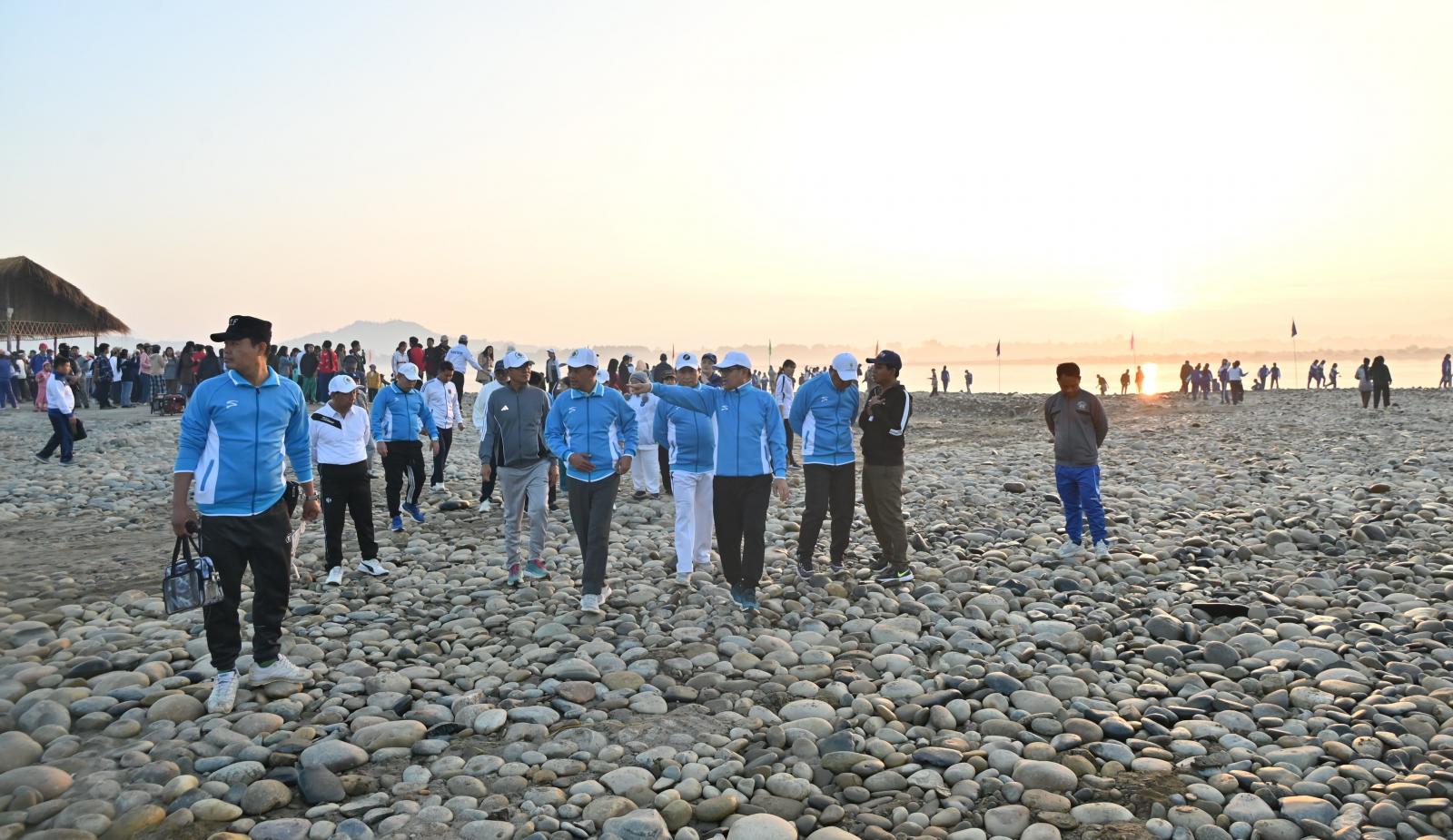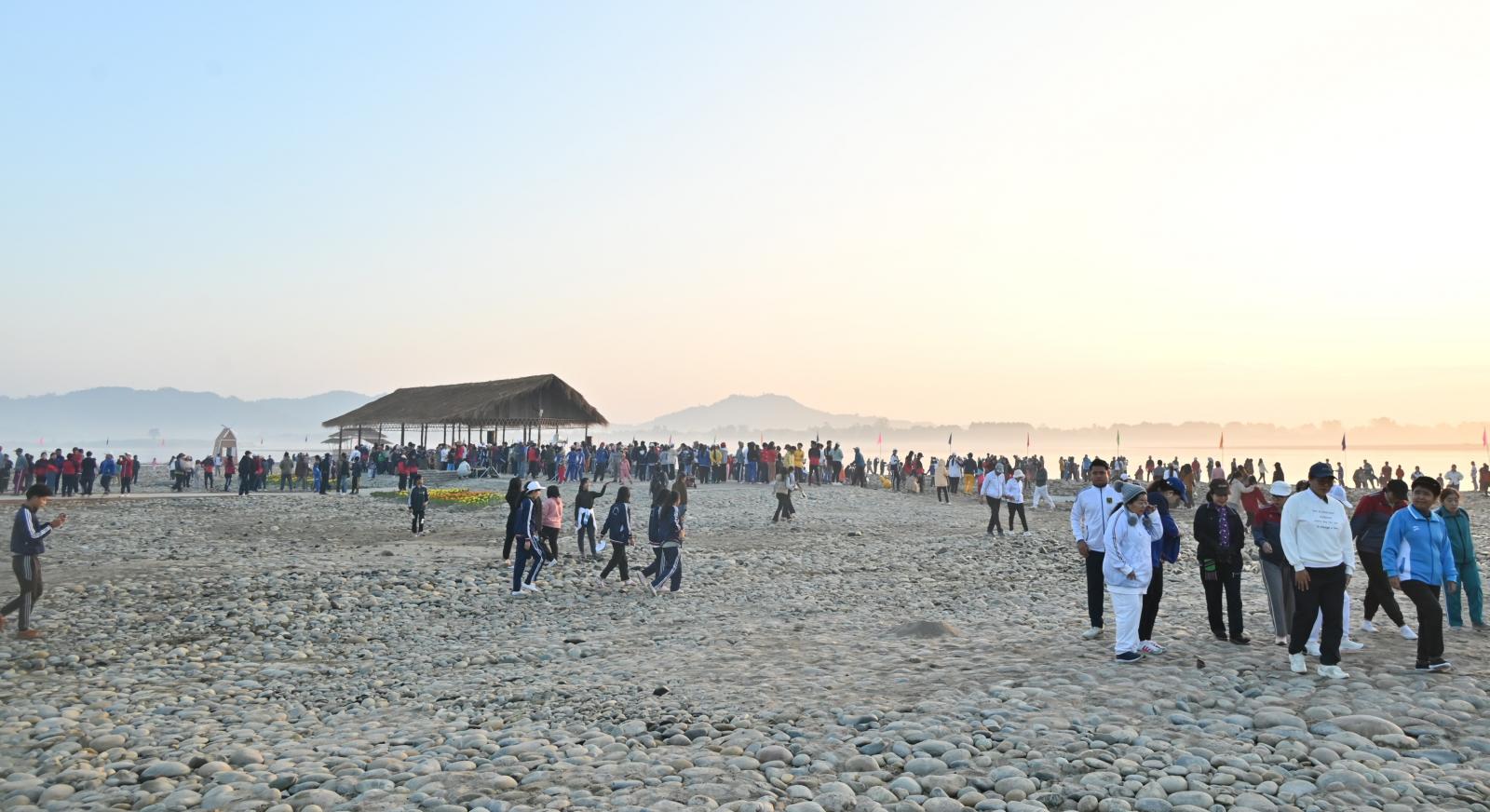 ရှေးဦးစွာ စုပေါင်းလမ်းလျှောက်ပွဲသို့ ပြည်နယ်ဝန်ကြီးချုပ် ဦးခက်ထိန်နန်၊ ပြည်နယ်တရား လွှတ်တော်တရားသူကြီးချုပ် ဒေါ်အေးအေးမော်၊ ပြည်နယ်အစိုးရအဖွဲ့ဝင် ဝန်ကြီးများ၊ ပြည်နယ်ဥပဒေချုပ်တို့ တက်ရောက်ခဲ့ကြပြီး ပြည်နယ်/ ခရိုင်/ မြို့နယ်အဆင့်ဌာနဆိုင်ရာ အရာထမ်း/ အမှုထမ်းဝန်ထမ်းများ၊ တက္ကသိုလ်၊ ပညာရေးဒီဂရီကောလိပ်နှင့် သူနာပြုသင်တန်းကျောင်းများမှ သင်တန်းသား/သင်တန်းသူများ၊ အခြေခံပညာ ကျောင်းသား/ကျောင်းသူများ၊ ရပ်ကွက်နေပြည်သူများက မြစ်ကြီးနားမြို့၊ ဧရာရပ်ကွက် ပြည်သူ့အားကစားကွင်း အထူးတန်းပွဲကြည့်စဉ်ရှေ့ စုရပ်မှ ရုံးကြီးလမ်း၊ ထိုမှတစ်ဆင့် သခင်နက်ဖေလမ်းအတိုင်း လမ်းလျှောက်ခဲ့ကြပြီး စီတာပူရပ်ကွက်၊ မနောကွင်းအတွင်းသို့ ဝင်ရောက်ခဲ့ကြကာ မနောကွင်းအားပတ်၍ တပျော်တပါး စုပေါင်းလမ်း လျှောက်ခဲ့ကြပြီး မနောကွင်းရင်ပြင်၌ ကိုယ်ကာယလေ့ကျင့်ခန်း အတွဲအမှတ် (၁)နှင့် (၂) လေ့ကျင့် ခန်း၊ Fitness Dance တို့ကို အတူတကွ စုပေါင်းလေ့ကျင့်ခဲ့ကြသည်။