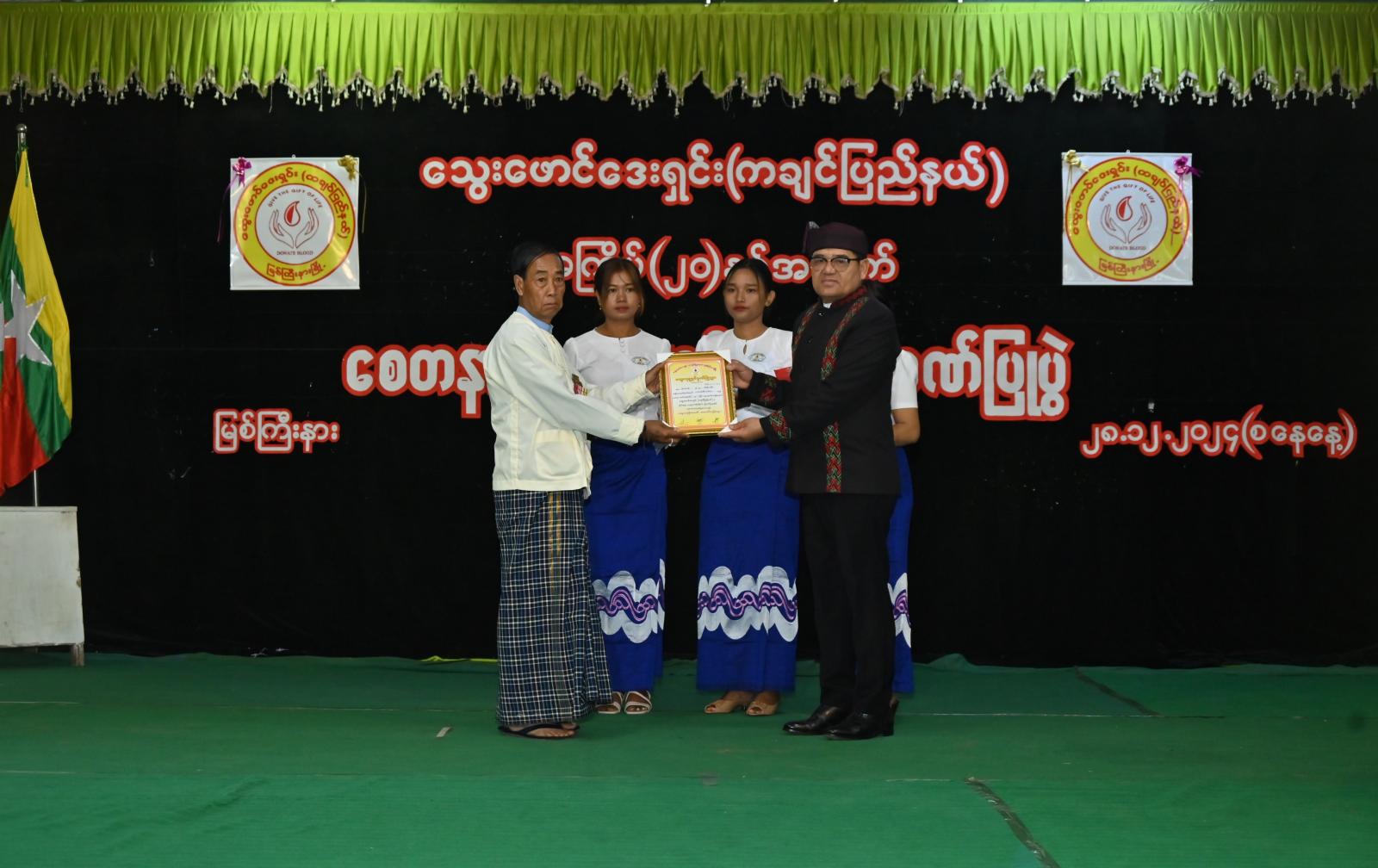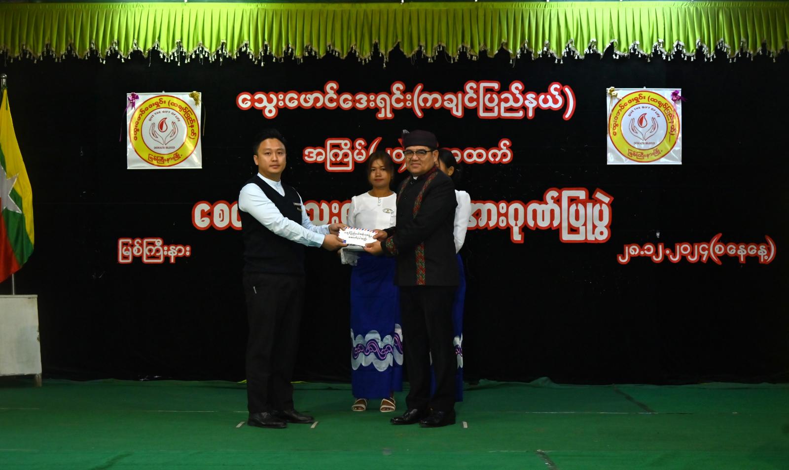 ယင်းနောက် ပြည်နယ်ဝန်ကြီးချုပ်သည် မြစ်ကြီးနားမြို့ အမှတ်(၂)အခြေခံပညာအထက်တန်းကျောင်း၊ နိုင်ငံ့ရတနာခန်းမ၌ သွေးဖောင်ဒေးရှင်း (ကချင်ပြည်နယ်)မှ ကျင်းပပြုလုပ်သည့် ပဉ္စမအကြိမ်မြောက်၊ အကြိမ်(၂၀)နှင့်အထက် စေတနာသွေးလှူရှင်များအား ဂုဏ်ပြုပွဲအခမ်းအနားသို့ တက်ရောက် သည်။