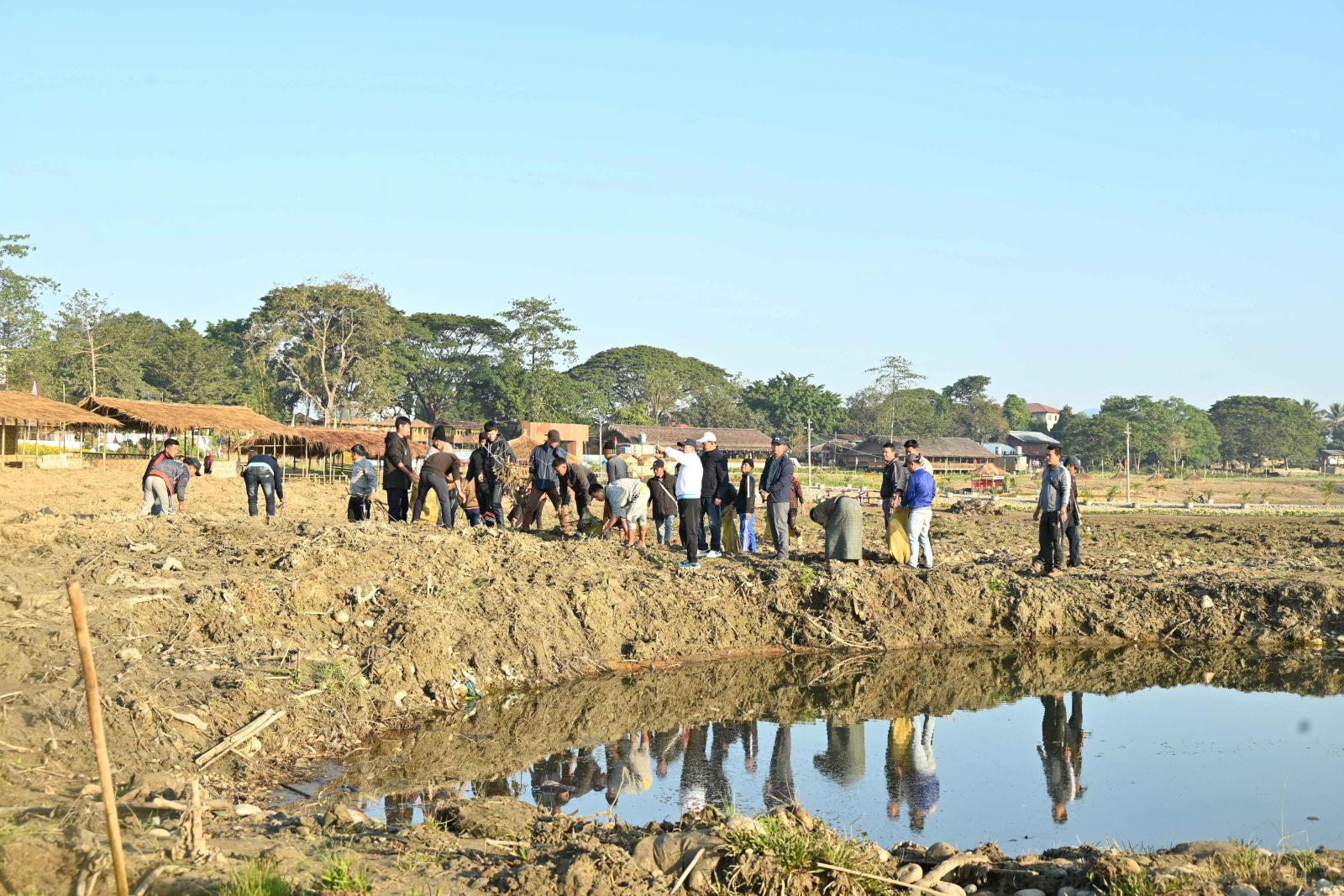 ထို့အတူ ပြည်နယ်ဝန်ကြီးချုပ်သည် ဒီဇင်ဘာ ၃ ရက် နံနက်ပိုင်းကလည်း အဆိုပါ အပန်းဖြေ စခန်းအတွင်း ပြင်ဆင်ဆောင်ရွက်နေမှုလုပ်ငန်းများနှင့် စပ်လျဉ်း၍ စည်ပင်သာယာရေးအဖွဲ့ စိမ်းလန်း စိုပြည်ရေးဝန်ထမ်းများနှင့် မီးသတ်တပ်ဖွဲ့ဝင်များ စုပေါင်း၍ မြေညှိခြင်း၊ သန့်ရှင်းရေး ဆောင်ရွက် ခြင်း၊ ပန်းပင်များ ဖြည့်စွက်စိုက်ပျိုးခြင်း လုပ်ငန်းများ ဆောင်ရွက်နေမှုကို လှည့်လည်ကြည့်ရှုစစ်ဆေးပြီး မြေယာပြုပြင်ခြင်း လုပ်ငန်းများ၊ ပုံဖော်အလှဆင်ခြင်းများ ထပ်မံဖြည့်စွက်ဆောင်ရွက်နိုင်ရေးမှာကြားခဲ့ကြောင်း သိရသည်။