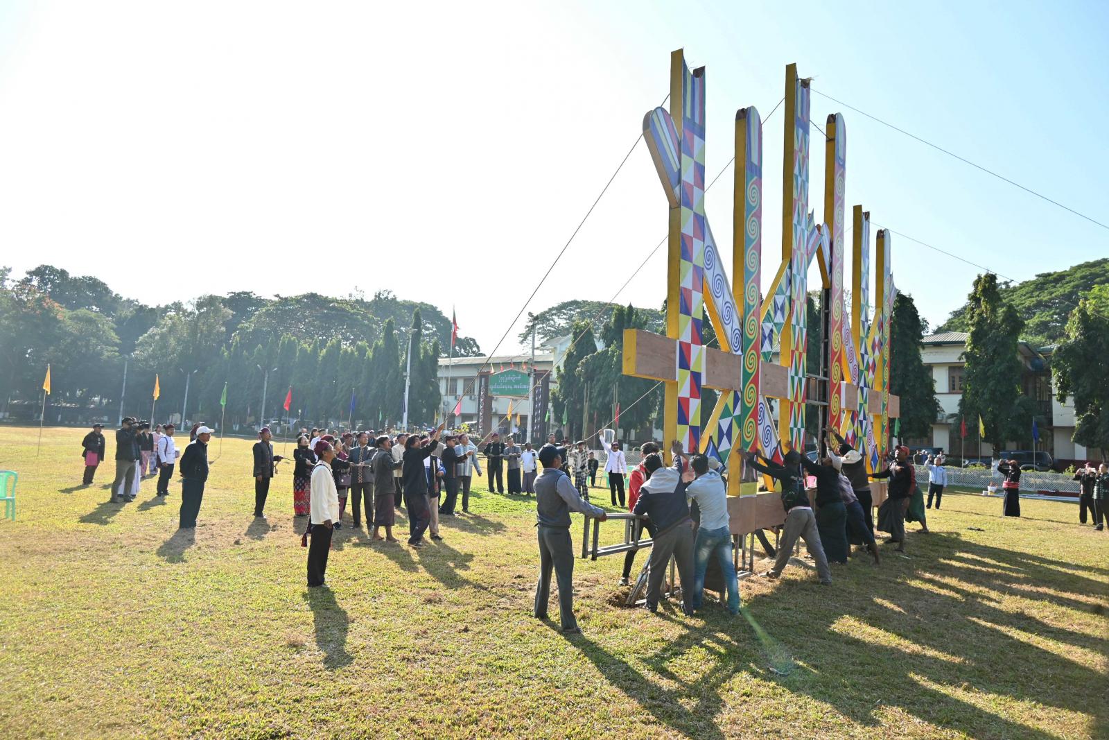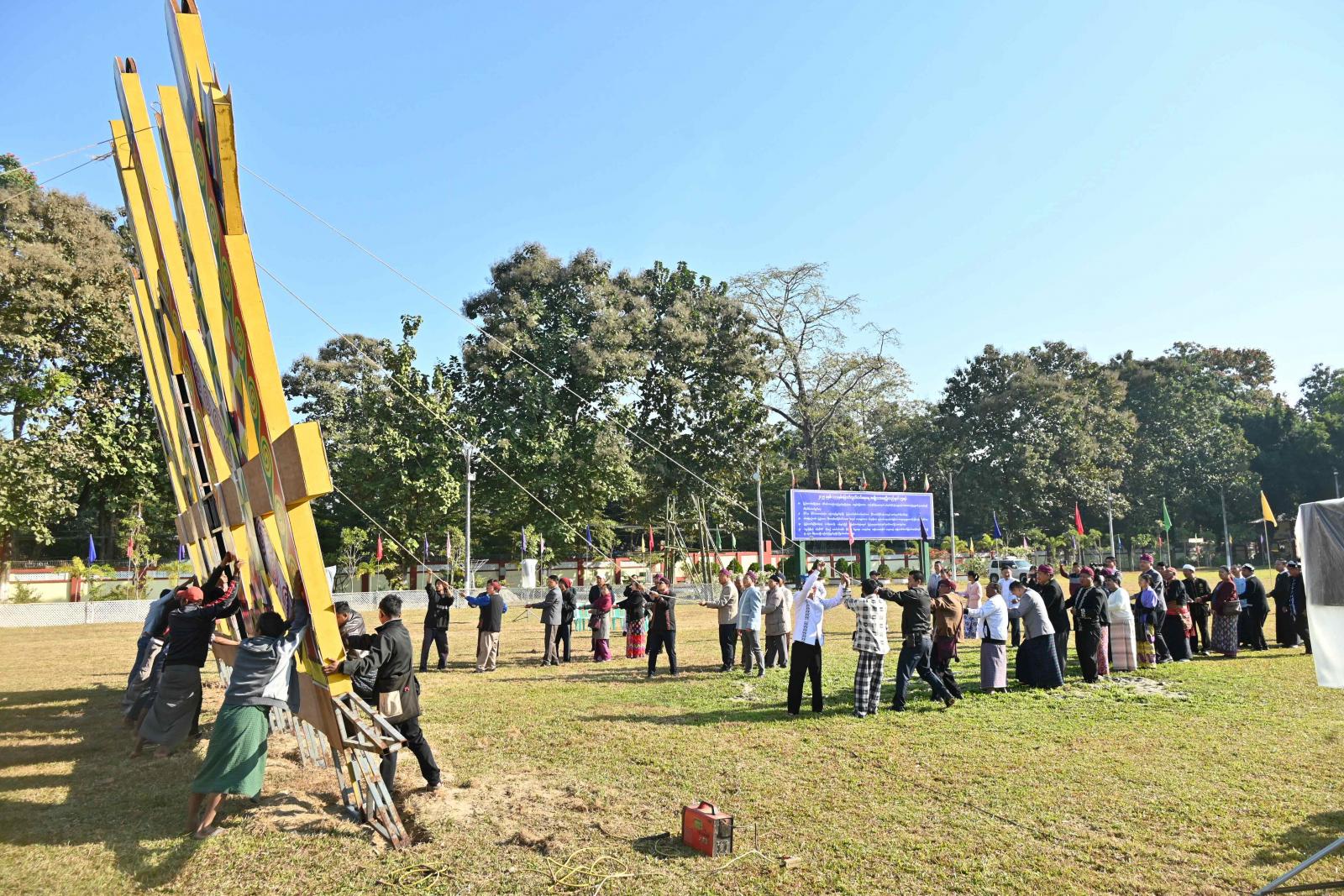 ကချင်ပြည်နယ်အစိုးရအဖွဲ့အနေဖြင့် ၂၀၂၅ ခုနှစ်၊ ဇန်နဝါရီ ၁၀ ရက်နေ့တွင် ကျရောက်သော (၇၇)နှစ်မြောက် ကချင်ပြည်နယ်နေ့ အခမ်းအနားတွင် ပြည်ထောင်စု၏စည်းလုံးခြင်း၊ စီးပွားလာဘ် လာဘတိုးပွားစေခြင်းနှင့် အောင်မြင်ခြင်းအထိမ်းအမှတ် မနောအကဖြင့် ဆင်နွှဲနိုင်ရေး ဇန်နဝါရီ ၅ ရက် နံနက် ၉ နာရီက မြစ်ကြီးနားမြို့ ပြည်နယ်အစိုးရအဖွဲ့ရုံးဝင်းအတွင်း ရုံးရှေ့မြက်ခင်းပြင်၌ မနောတိုင်ကို ရိုးရာအစဉ်အလာနှင့်အညီ စိုက်ထူခဲ့ကြသည်။