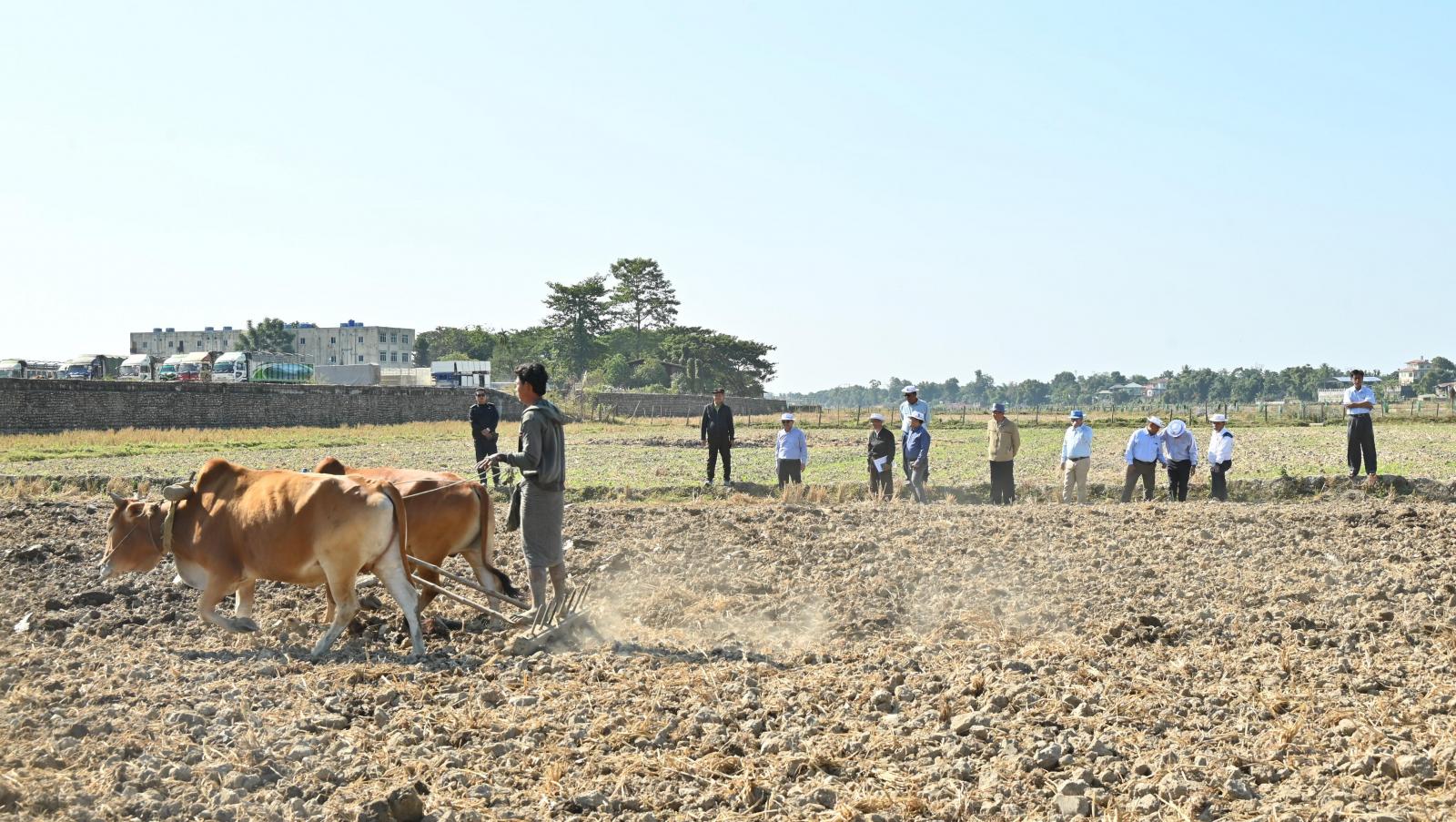 ထို့နောက် အဆိုပါ ရပ်ကွက်အတွင်းရှိ ဗလမင်းထင်စံပြစိုက်ကွင်းအတွင်း မိုးစပါးရိတ်သိမ်းပြီး ရိုးပြတ်ကျန်လယ်များတွင် သီးထပ်စိုက်စွမ်းအား တိုးတက်မြင့်မားစေရေးနှင့် ပန်းတိုင်အထွက်နှုန်း ရရှိရေးအတွက် တောင်သူများ နွားဖြင့်ထယ်ထွန်၍ သီးထပ်အဖြစ် ဆီထွက်သီးနှံနေကြာနှင့် ပဲပုပ်သီးနှံ ကြဲပက်စိုက်ပျိုးဆောင်ရွက်လျက်ရှိသည့် အခြေအနေများကို ကြည့်ရှုအားပေးခဲ့ကြပြီး အဆိုပါဗလမင်းထင်စံပြစိုက်ကွင်းတစ်ခုလုံး သီးထပ်စိုက်ဧကအား ယခုနှစ်အတွက် ဧက ၅၀ အထိ တိုးချဲ့ စိုက်ပျိုးနိုင်ရေးနှင့် စက်သုံးဆီအခက်အခဲကြောင့် လယ်ထွန်စက်များ ဝင်ရောက်နိုင်ခြင်းမရှိသေးသည့်အပေါ် ထယ်ရေးဝင်နောက်ကျမှုကို ပန်းတိုင်အထွက်နှုန်းကျဆင်းမှုမရှိစေရေး နည်းပညာပံ့ပိုးကူညီပေးနိုင်ရေး ဌာနဆိုင်ရာတာဝန်ရှိသူများနှင့် ပေါင်းစပ်ညှိနှိုင်းဆောင်ရွက်ပေးခဲ့ကြသည်။